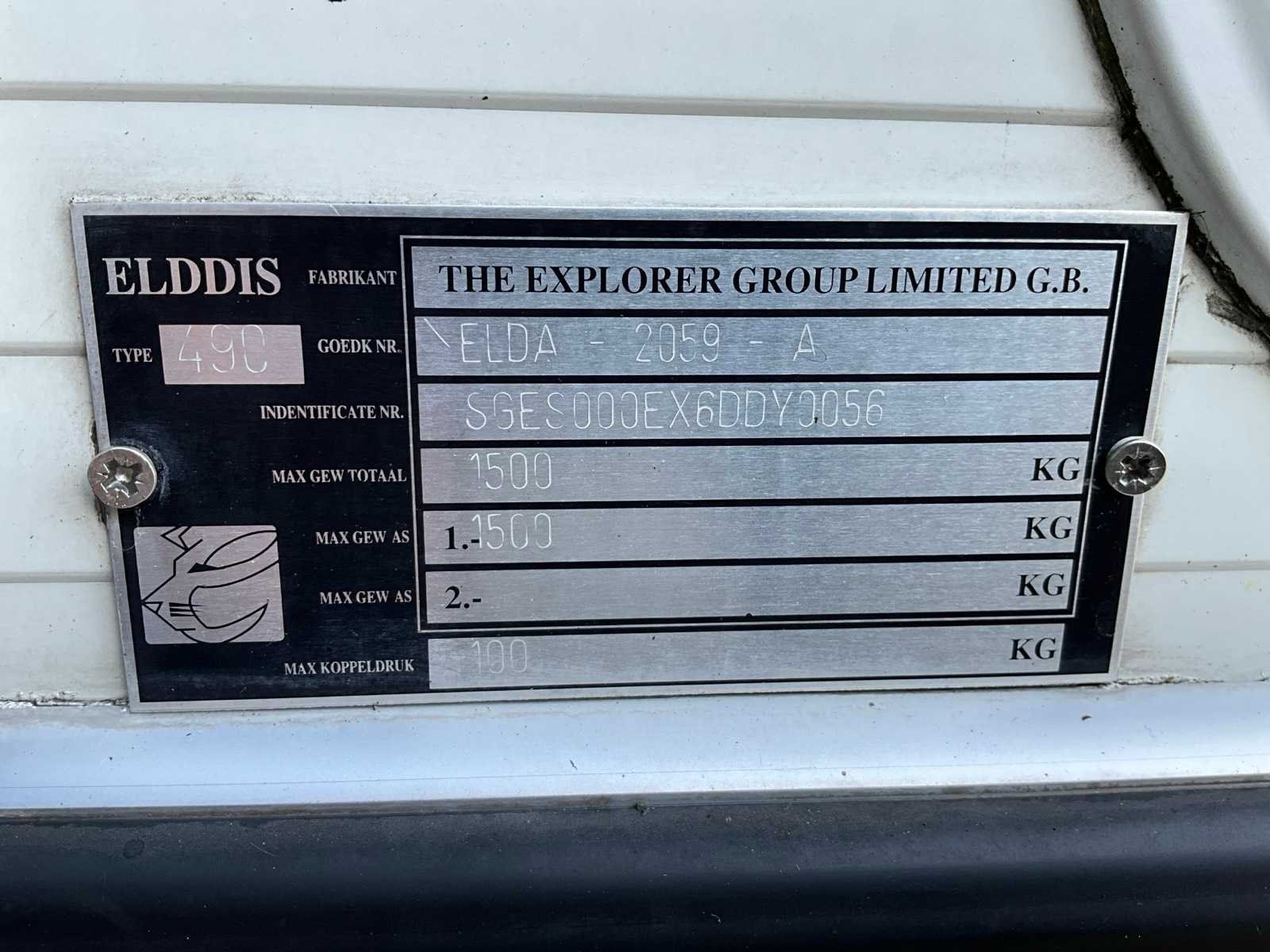 Voorzien van 3-pits gasfornuis; “Spinflo” midi prima MKIII oven; “Dometic” koelkast; “Trumatic” Kachel; radio-/cd-speler; “Salora” monitor en badkamer met wc en douchecabine Merk: Elddis Model: 490 Chassisnummer: SGES000EX6DDY0056 Bruto BPM (NL): 0€ Datum eerste toelating: 2007-07-17 Bouwjaar: 2007 Kenteken: WX-VH-01 Carrosserie: Caravan Kleur: niet van toepassing