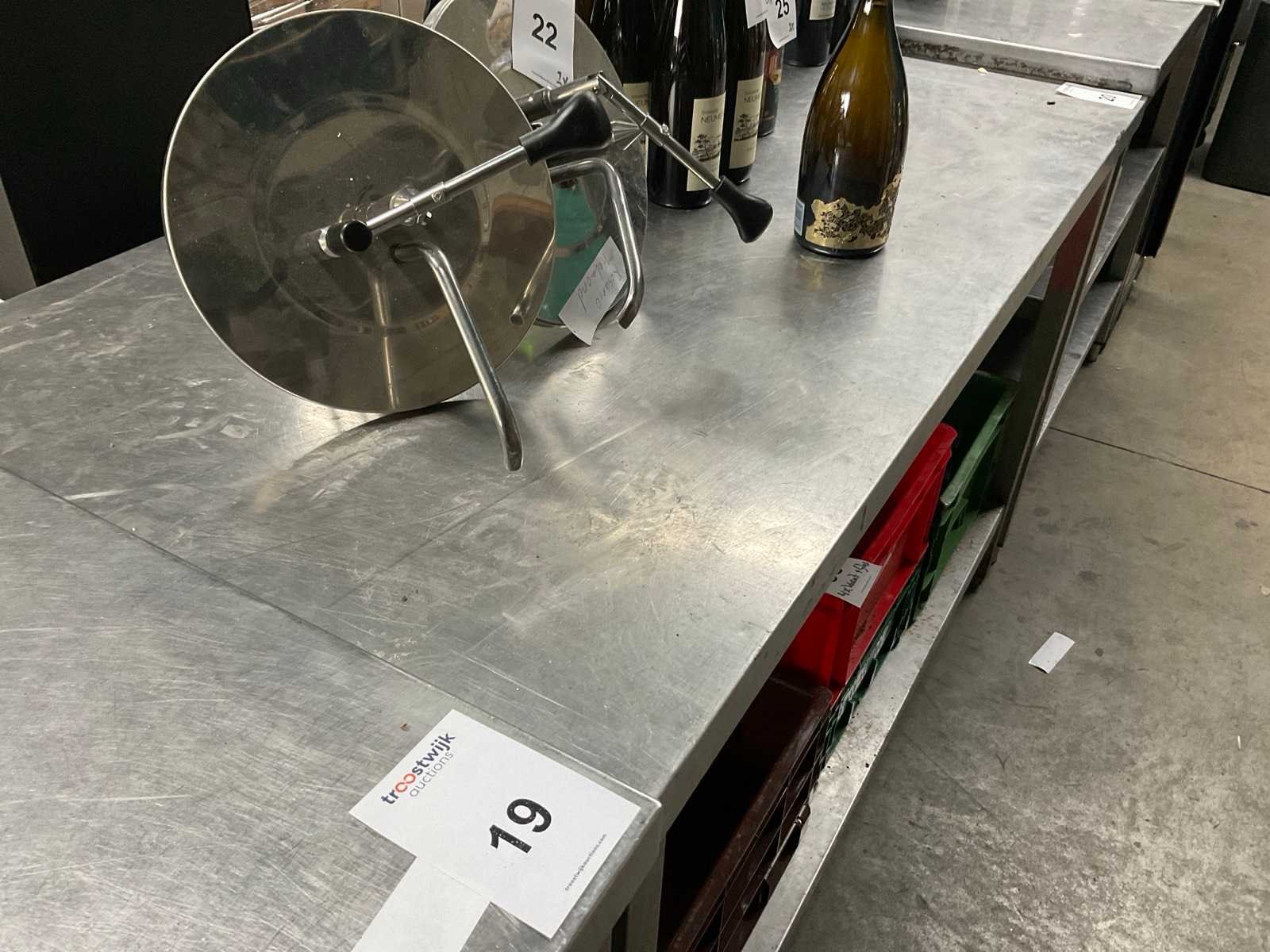 V.v. plank onder tafel Lengte: 140cm Breedte: 70cm Hoogte: 90cm Materiaal: RVS