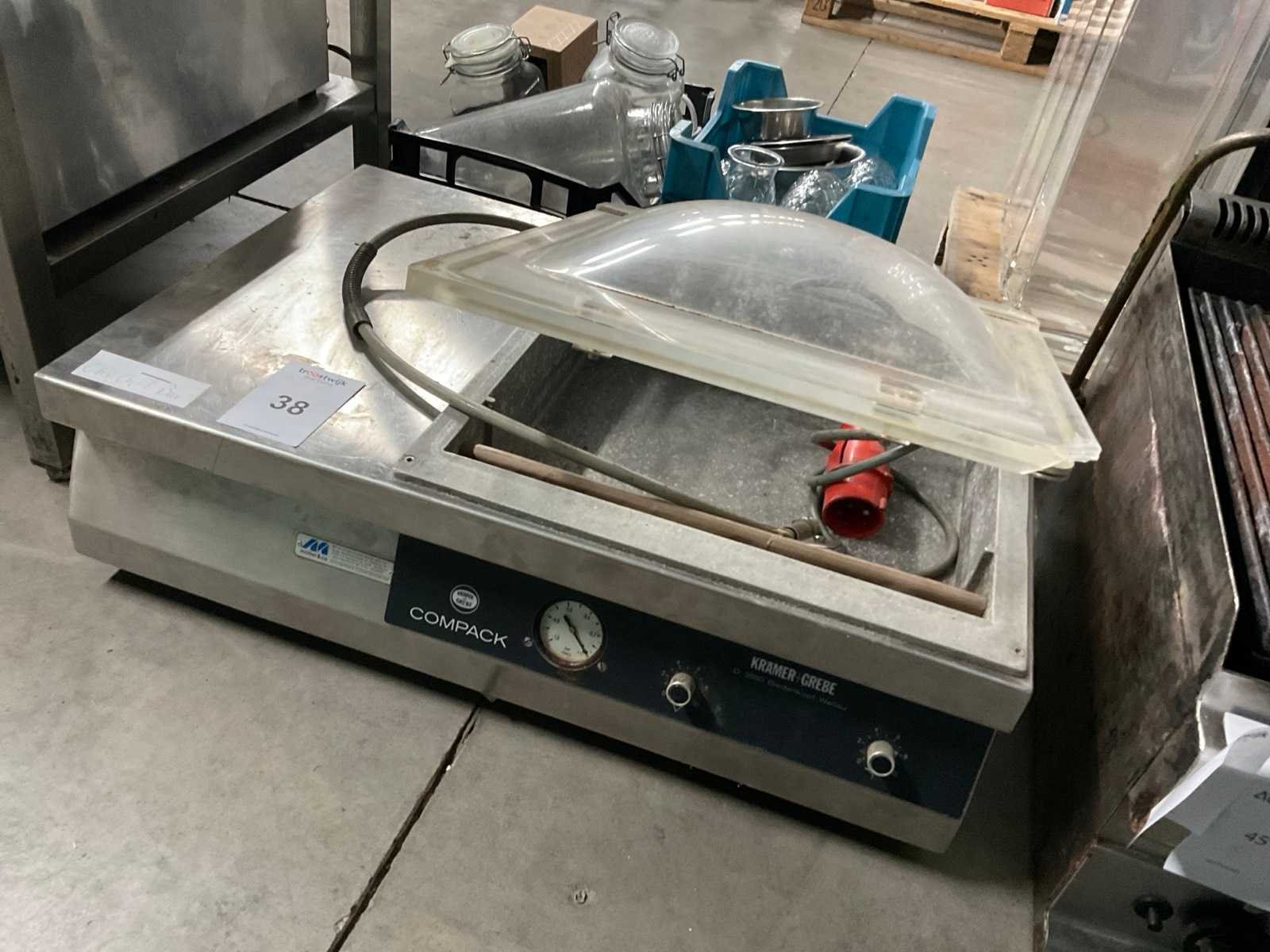 Merk: Kramer+Grebe Type: Compack Bouwjaar: 1982 Lengte sealbalk: 400mm Aantal sealbalken: 1 Kamer afmeting l: 400mm Kamer afmeting b: 350mm Kamer afmeting h: 100mm Aantal kamers: 1 Totale afmeting L: 810mm Totale afmeting Breedte: 550mm Totale afmeting Hoogte: 350mm