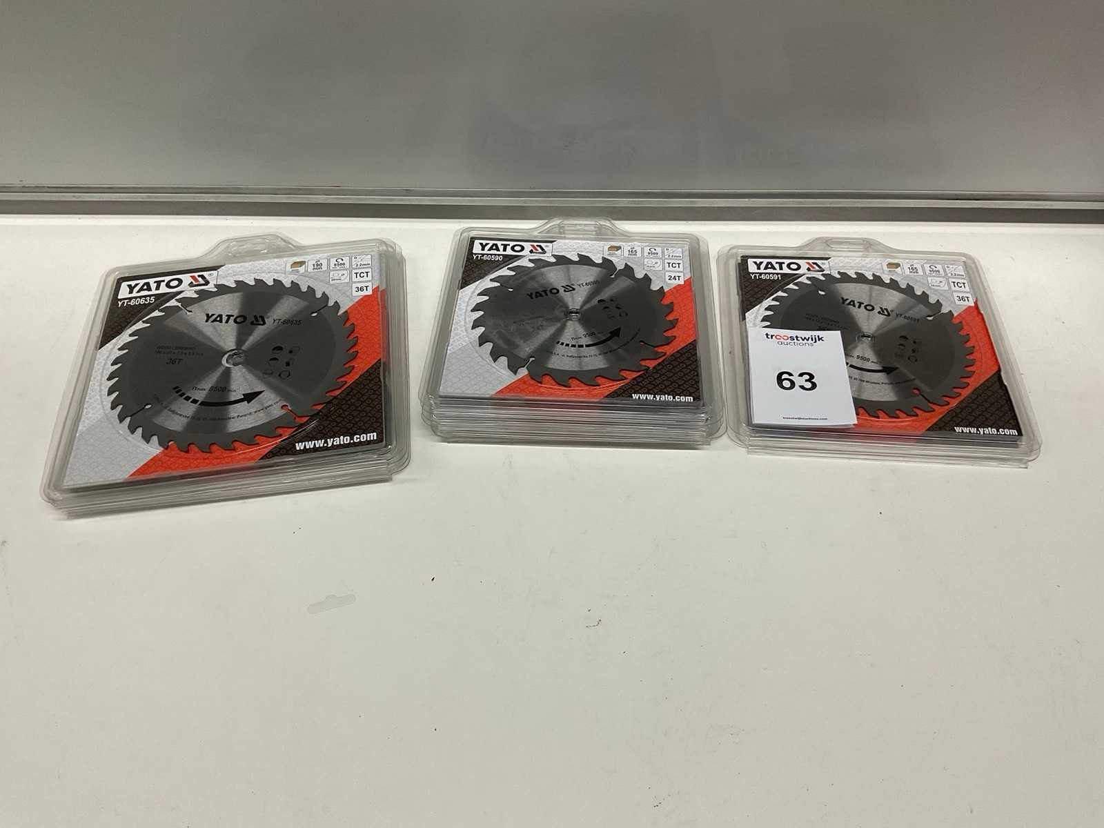 2x YT-60591 165mm 36T, 5x YT-60590 165mm 24T, 4x YT-60635 190mm 36T Merk: Yato Model: YT-60591+60590+60635