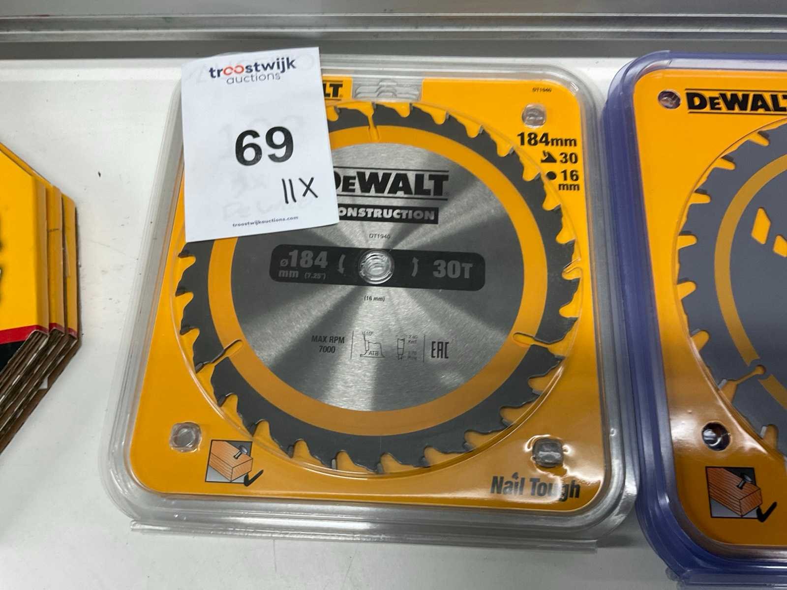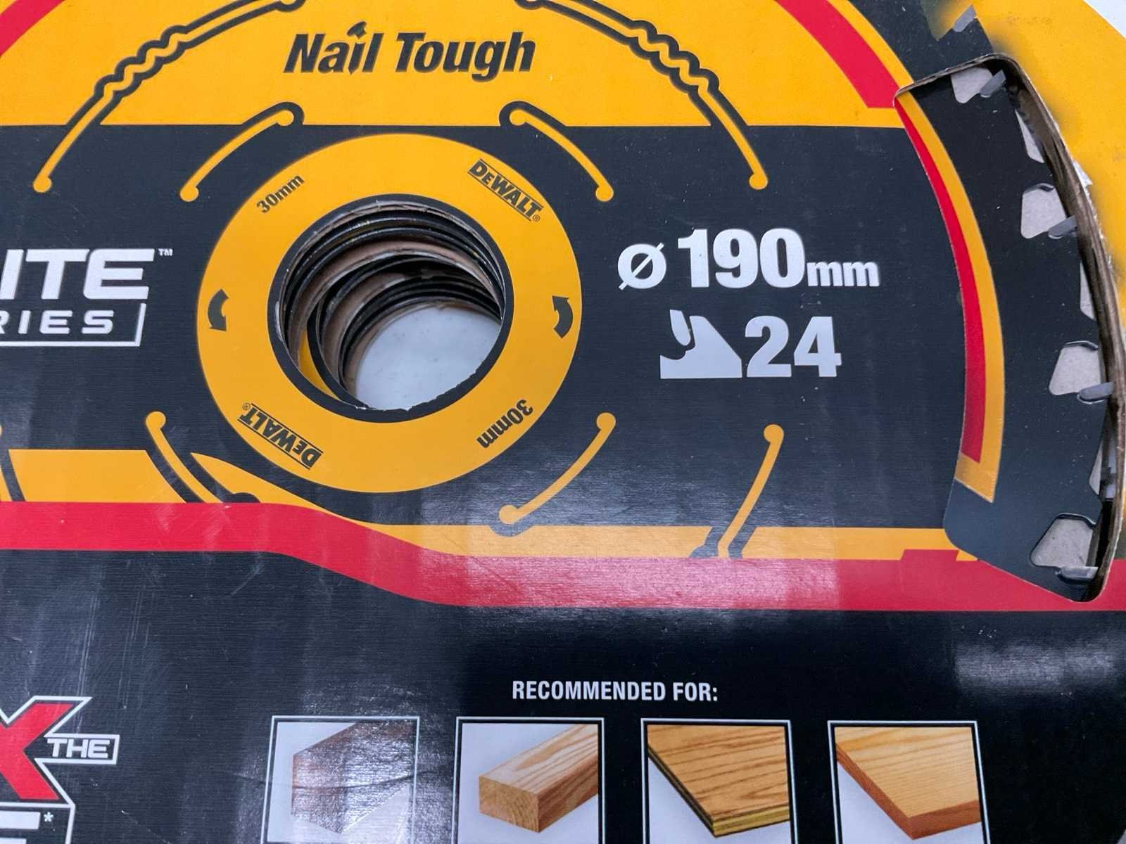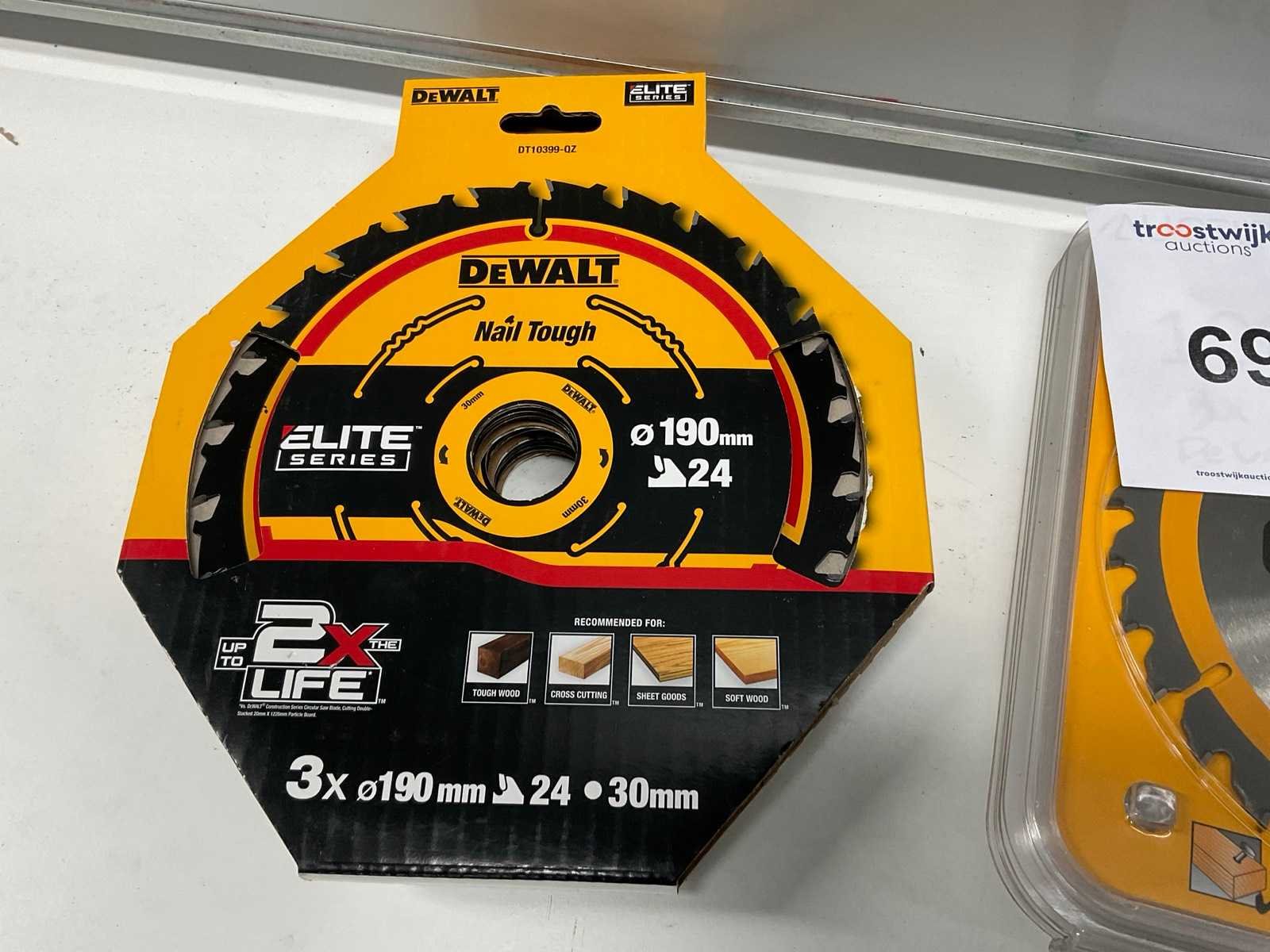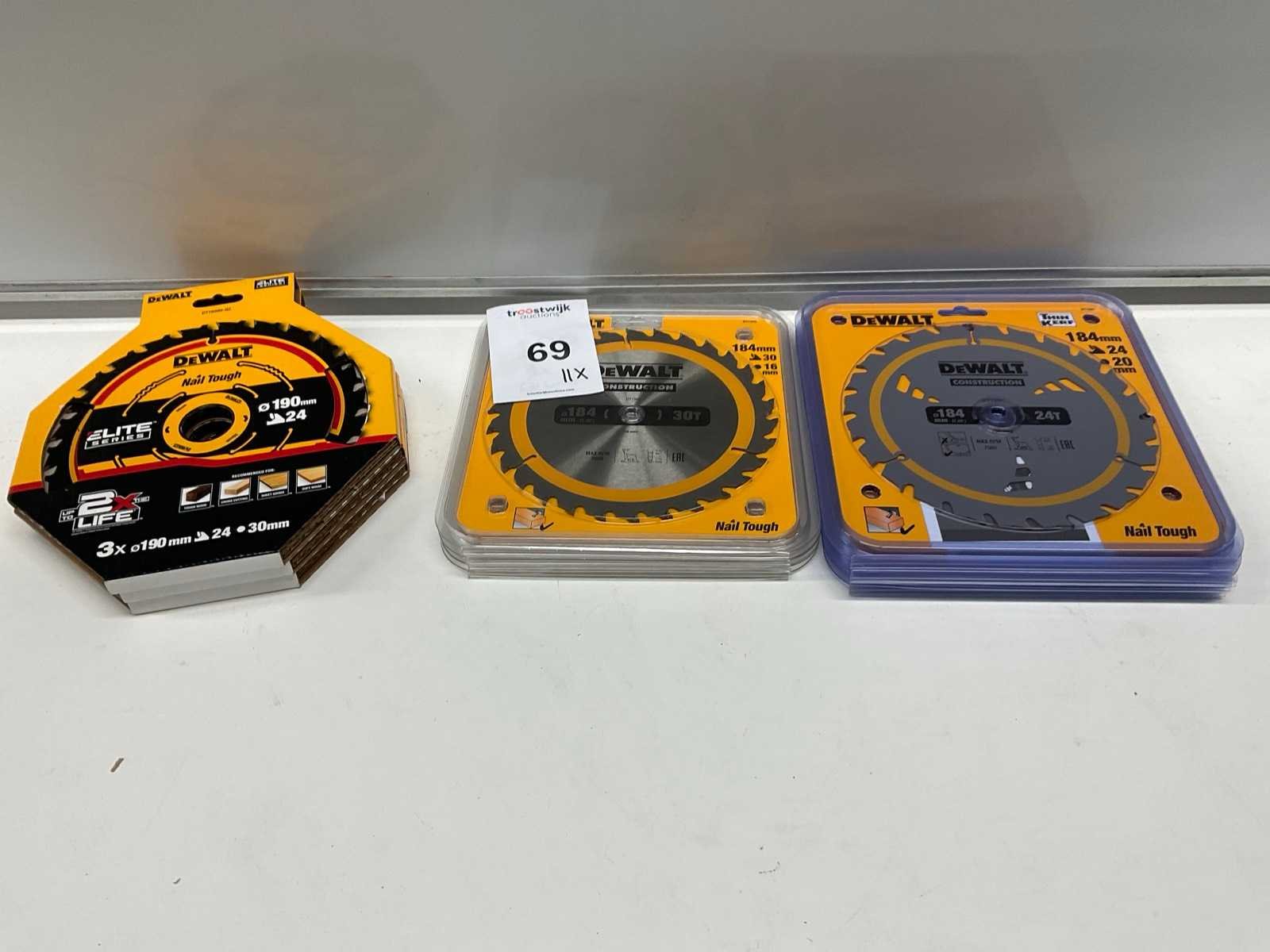 4x DT1951 184x20x1.8 mm 184mm, 4x DT1940n184x16x2.6 mm 30T en 3x DT10399-QZ 190x30x1.7 mm 24 T Merk: DeWalt Type: DT1951, DT1940, DT10399