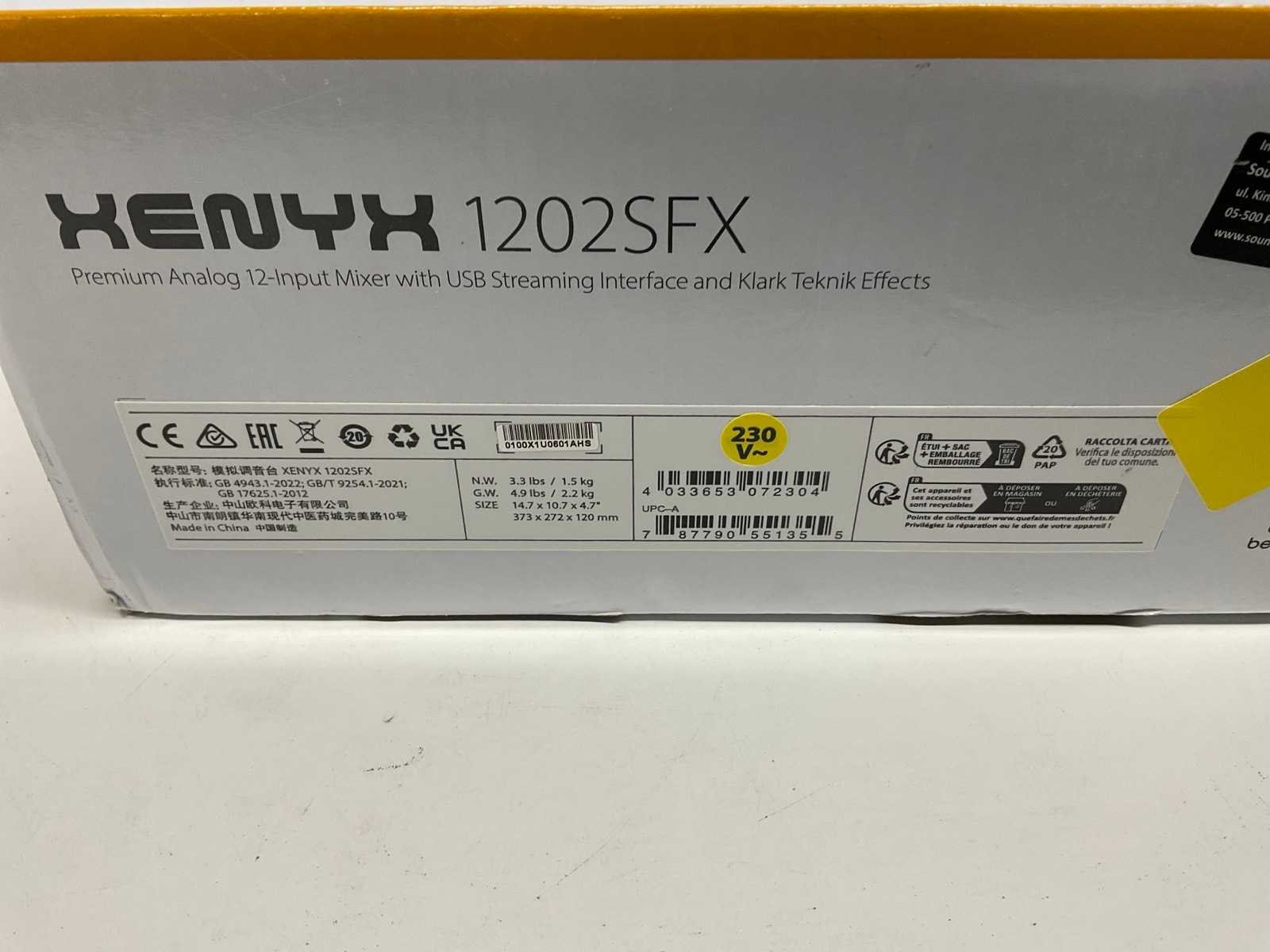 Ongebruikt in open doos Merk: Behringer Model: 1202SFX Gewicht: 1.5kg Lengte: 38cm Breedte: 27cm Hoogte: 12cm