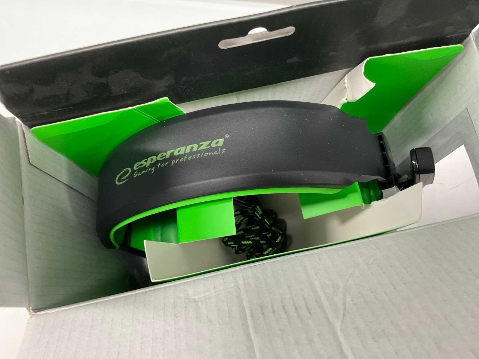 Esparanza betreft retourgoed in open doos, werking onbekend, Hellcat in ongeopende verpakking Merk: Esparanza, Hellcat Type: Gaming headset, Backlit stereo headset Kleur: Groen, blauw