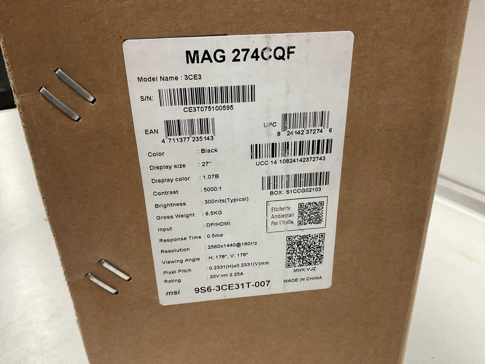 Betreft retourgoed in geopende verpakking Merk: MSi Model: MAG 274DQF Type: Wqhd Beeldfrequentie: 180Hz Beelddiagonaal: 27'' Kleur: Groen, blauw