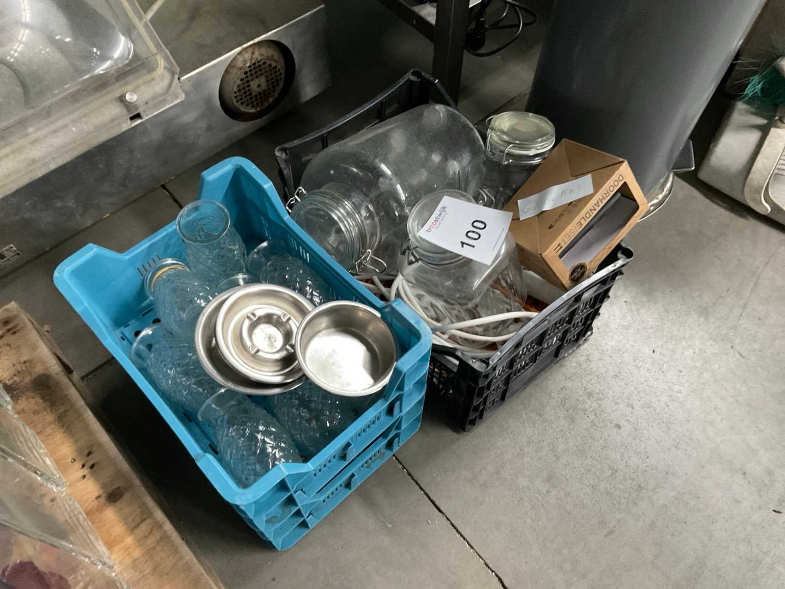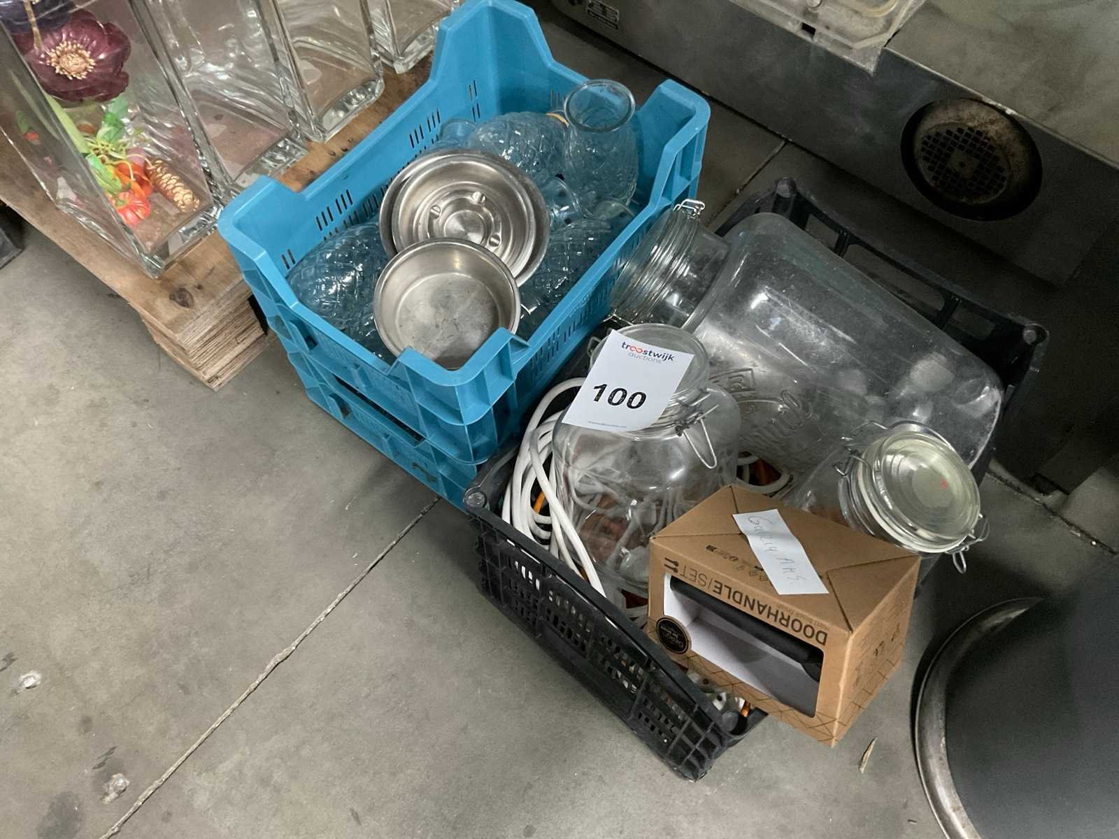 1e: Glaswerk 2e: Asbakken 3e: Verlengkabels 4e: In 3 kratjes