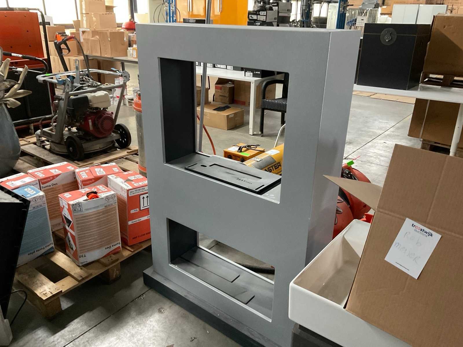 Mobiele display, decohout los in doos. Merk: Ruby fires Lengte: 90cm Breedte: 25cm Hoogte: 136cm
