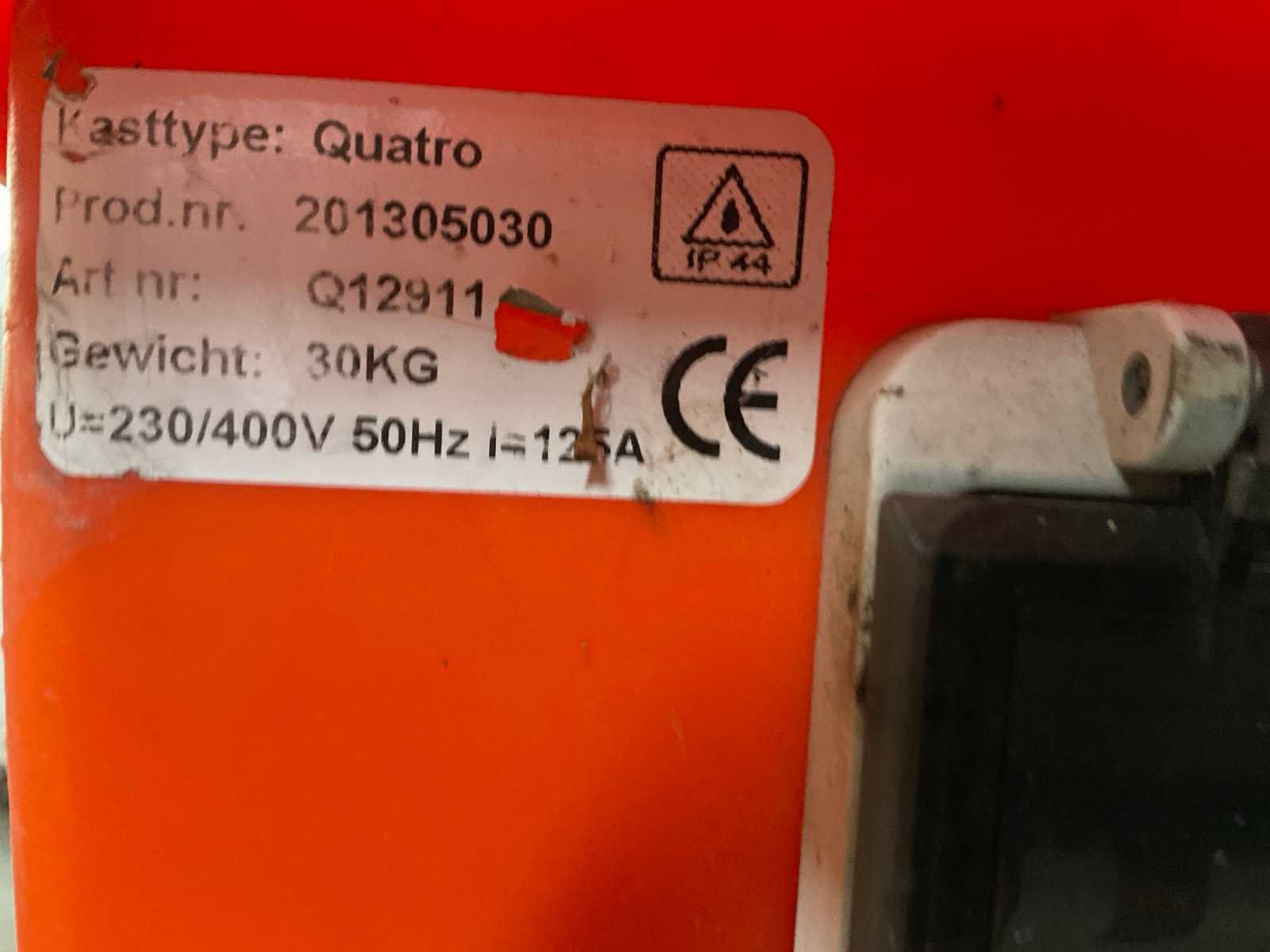 V.v. zekeringen rondom Type: Quattro Aansluiting: 125A Aantal uitgangen 230v: 6 Aantal uitgangen 380 v / 32 a: 4 Aantal uitgangen 380 v / 63 a: 2 Eigen gewicht: 30kg Totale afmeting L: 580mm Totale afmeting Breedte: 580mm Totale afmeting Hoogte: 1000mm