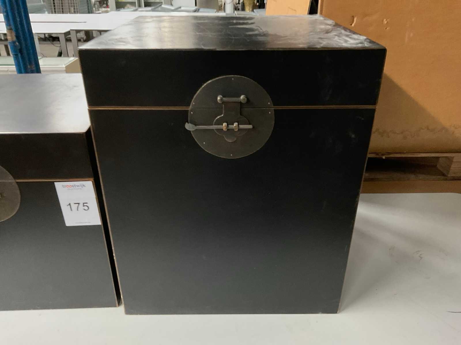 2 houten kisten, 1x 50x50x60 cm en 1x 45x45x50 cm, inclusief 2 stoelen zonder tafel. Kleur: Zwart