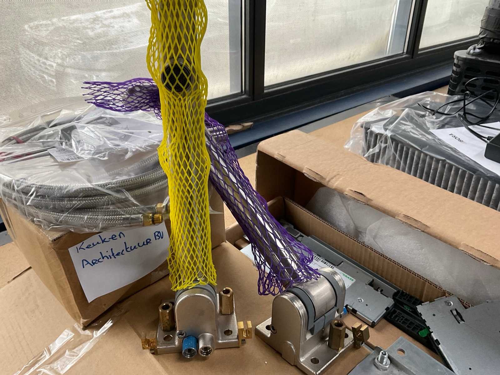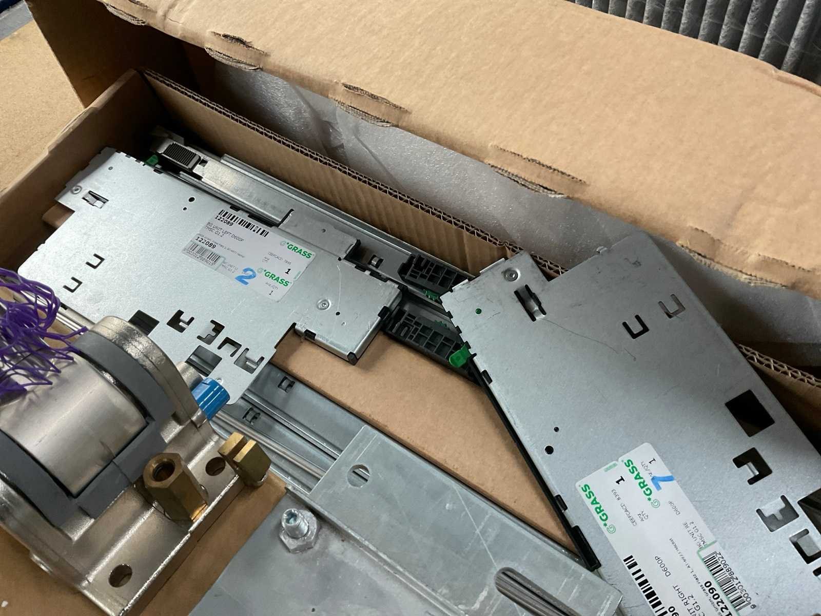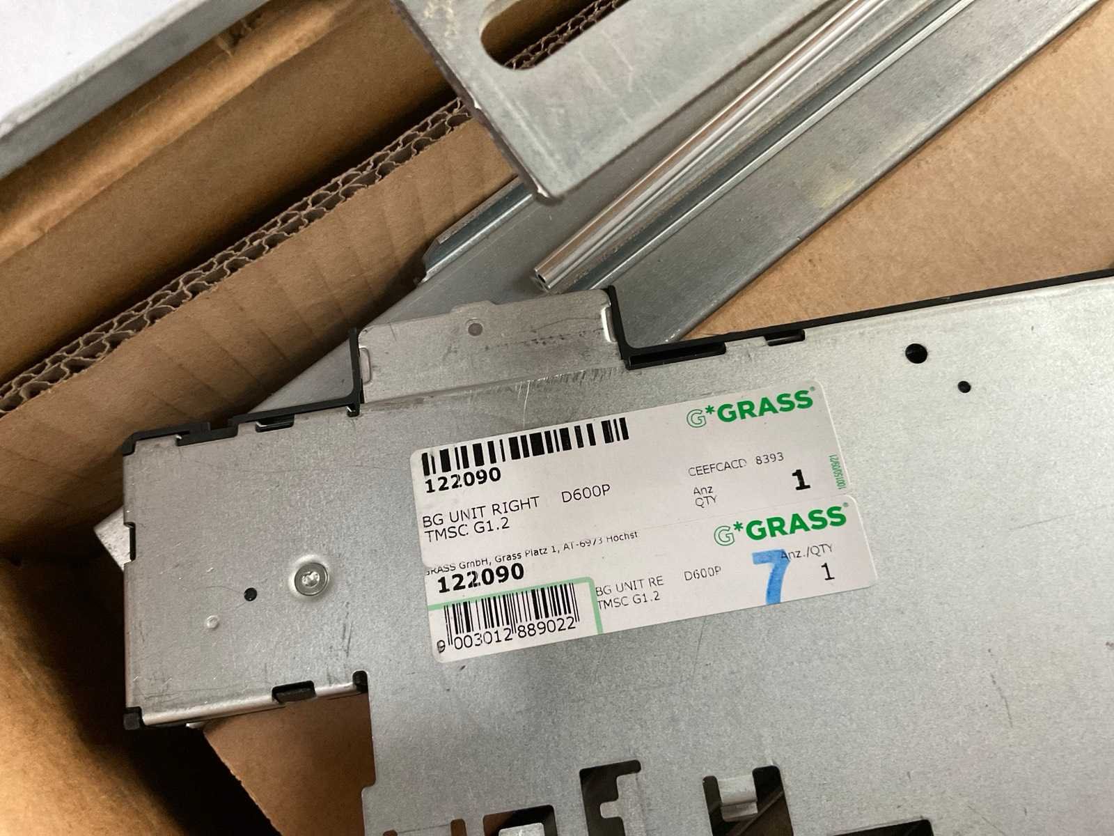 Diverse onderdelen in 2 dozen. Merk: Grass, Bulthaup Model: Ladegeleider Kleur: RVS