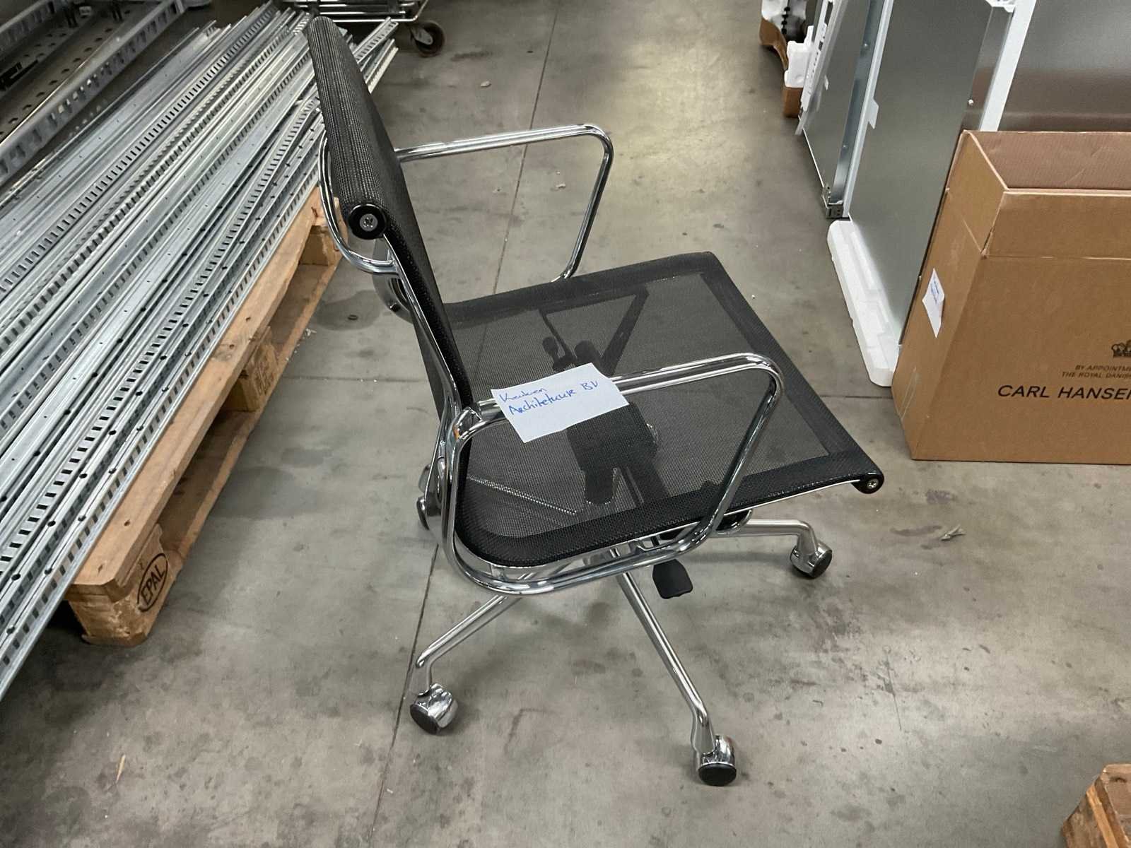 Inclusief 4 nieuw kussens, carlhansen.com Kleur: Zwart met chroomkleur Lengte: 57cm Breedte: 50cm Hoogte: 83cm Zithoogte: 44cm Diepte: 40cm Materiaal: Metaal en kunststof