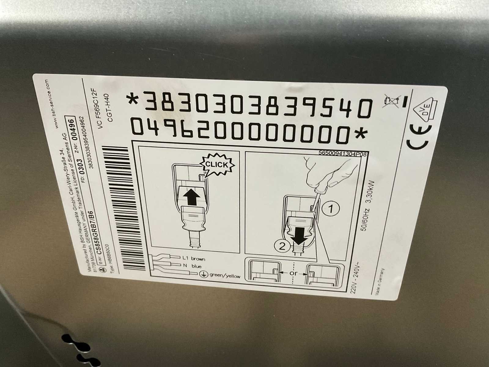 Ongebruikt Merk: Siemens Model: CS858GRB7 Totaal netto inhoud: 47l Plaatsing van het apparaat: Inbouw Spanning: 230V Energielabel: A+ Lengte: 60cm Breedte: 55cm Hoogte: 45cm