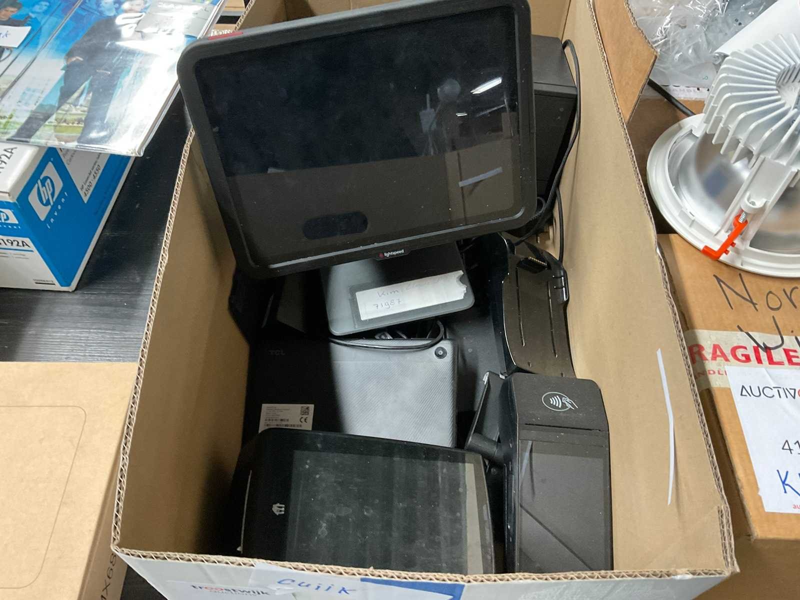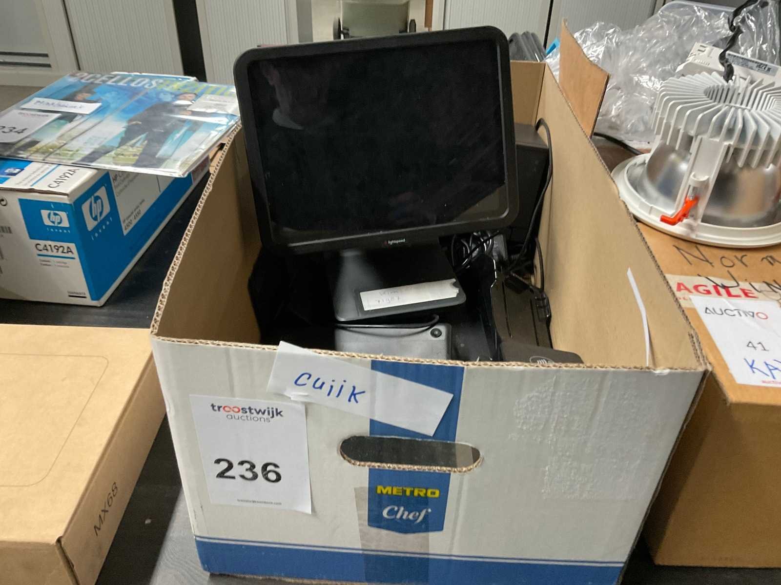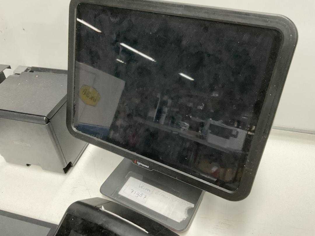 Lightspeed-unit (zwart) Epson printer (zwart) Beeldscherm op voet (zwart) Overige component (zwart, staand) Doos met diverse kabels, voedingen/adapters en aansluitmateriaal Merk: Lightspeed Touchscreen: true Digitaal: true