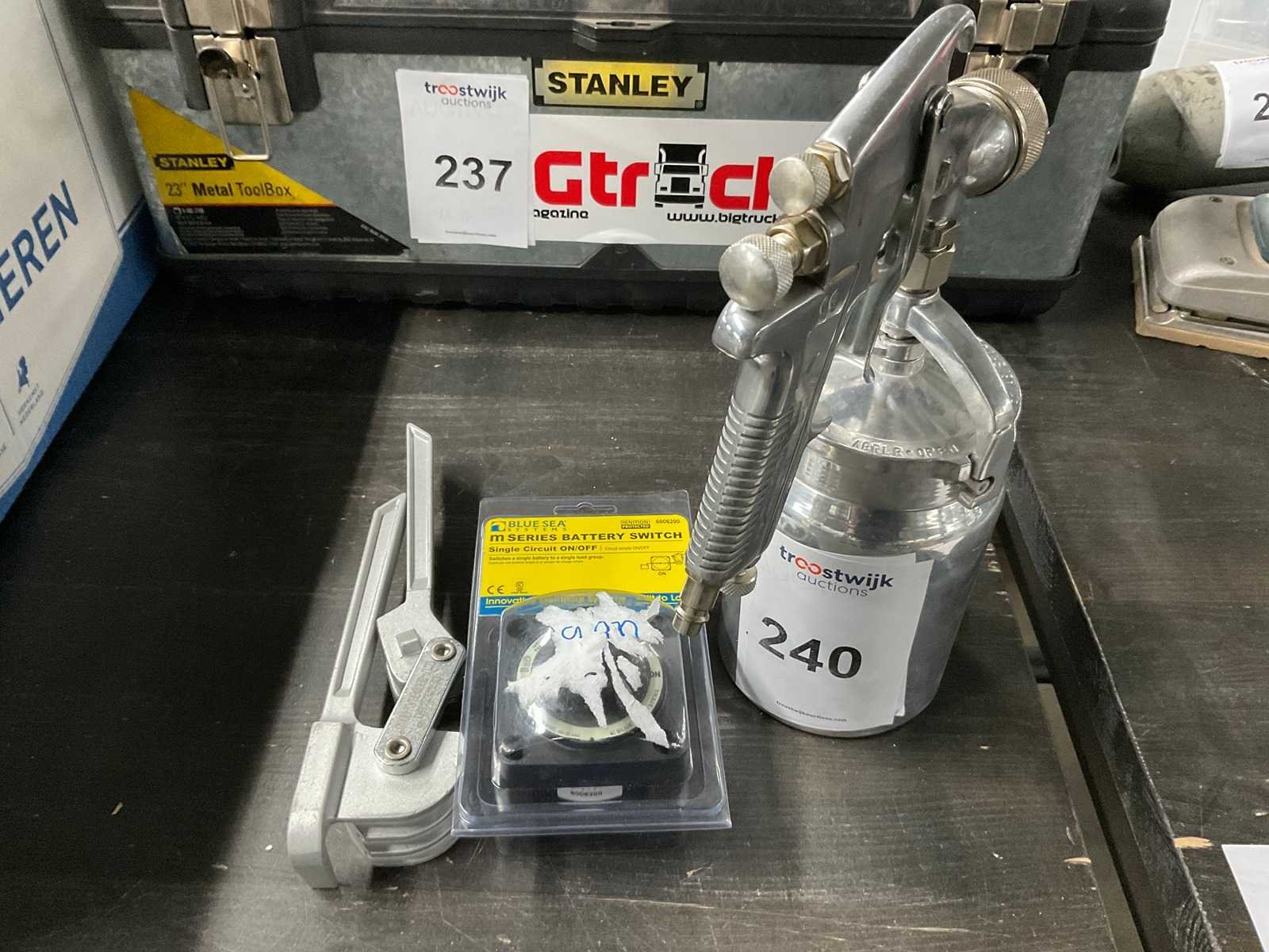 Verfspuit v.v. onderbeker inclusief leidingbuiger, type 368 FH 1/4"-5/16"-3/8" en batterij schakelaar.