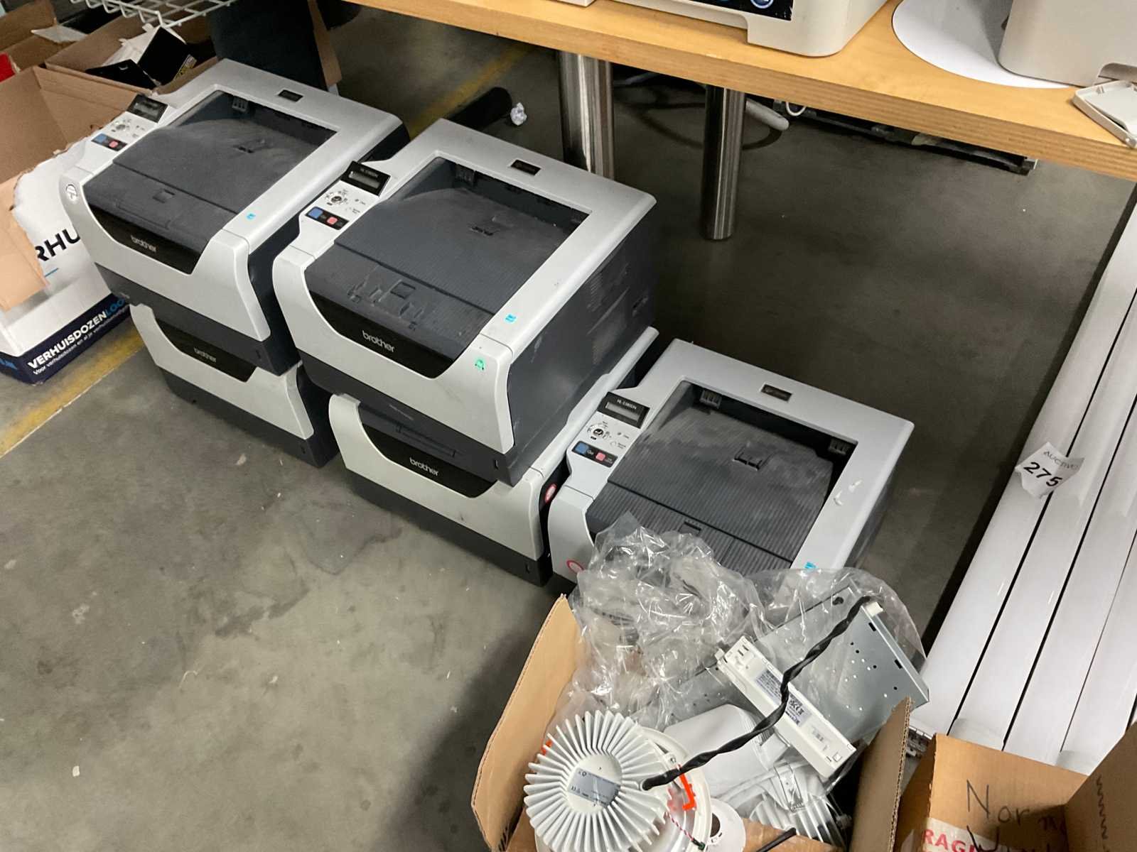 Diverse printers inclusief tonercartridges, kantoorbenodigdheden, routers etc Merk: Brother, Lexmark, HP Model: o.a. HL-5380DN, E360d