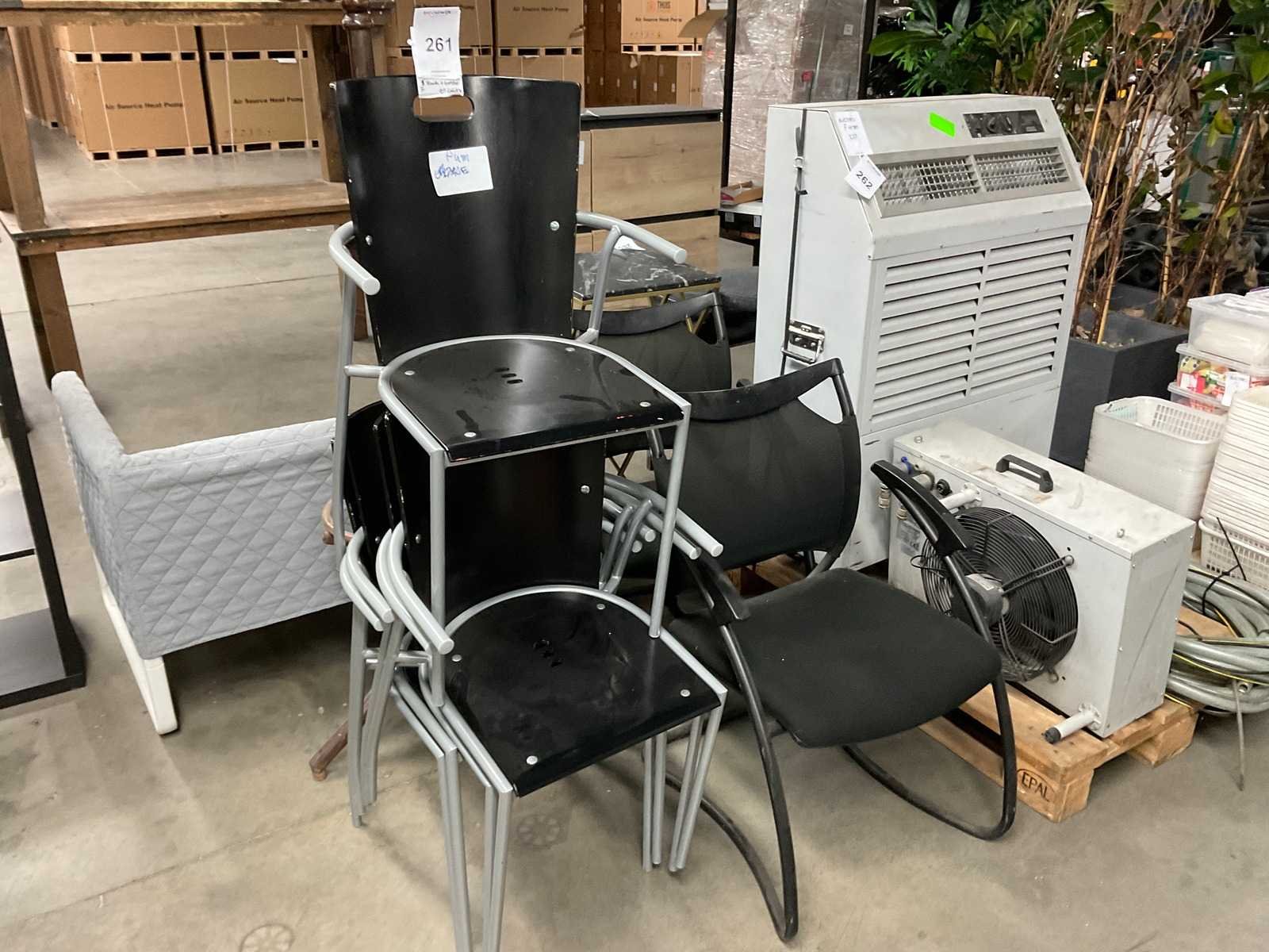 Kantinestoelen, kapstok (6x)