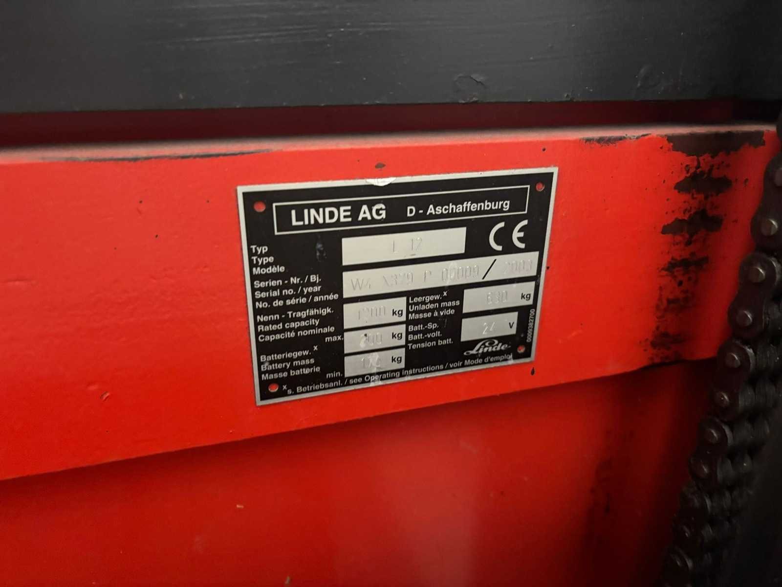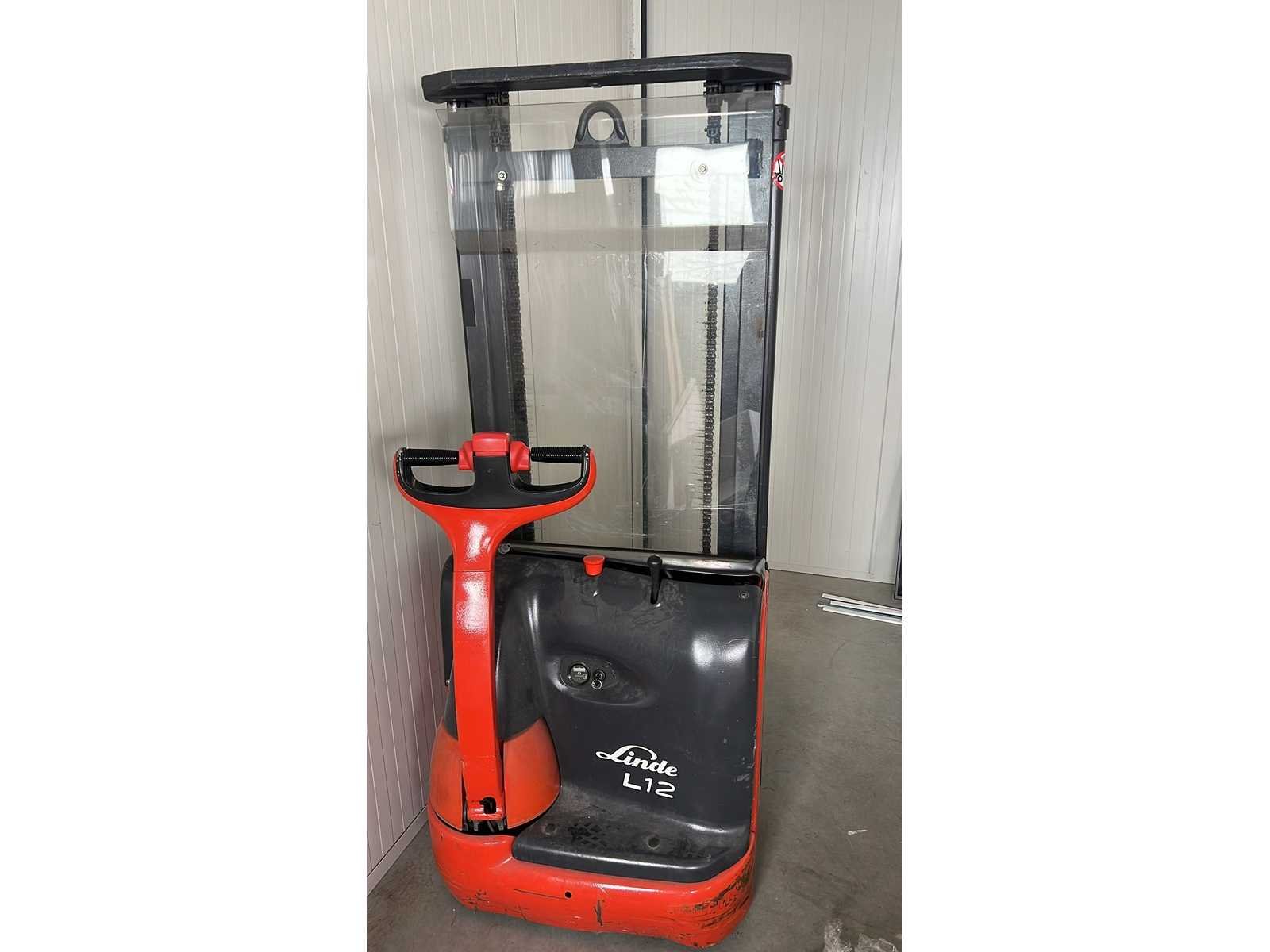 Stapelaar gaat niet aan, rolt wel. Merk: Linde Type: L 12 Bouwjaar: 2003 Hefvermogen: 1200kg Lepellengte: 1140mm Eigen gewicht: 630kg Minimale doorrijhoogte: 195mm Accu lader: true