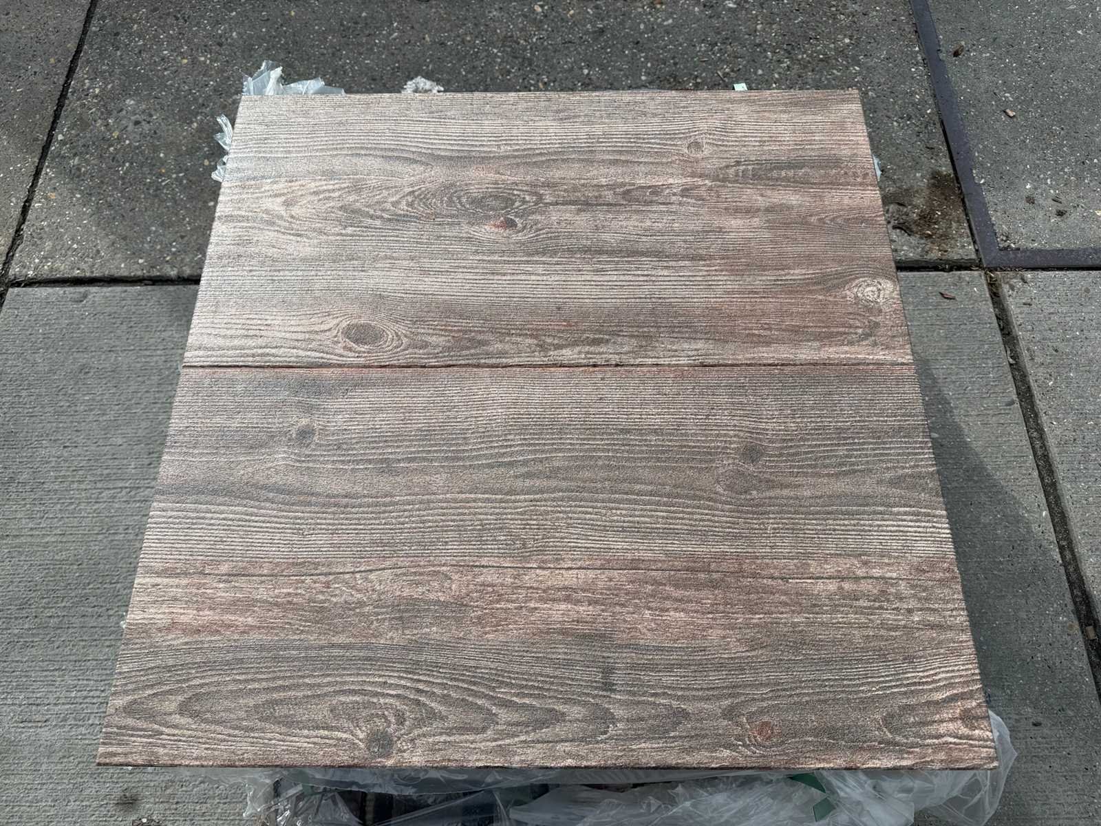 Afmetingen circa: 80x40x4 cm. Gecoate tegel Houtlook. Kwaliteit: A-Keus. Kleur: Bruin Nuance. Aantal pallets: 3. Afhalen van de kavel kan op 13 mei in Hulst - De factuur van Troostwijk dient uiterlijk 5 mei betaalt te zijn. - Bij betaling na deze datum is afhaal alleen mogelijk op afspraak! - Neem voor bezorging uiterlijk 7 mei contact op met veiling@dbtrading.nl, onder vermelding van het kavelnummer, factuur- en afleveradres. - Kosten levering in Nederland - Eerste kavel €110,00 ex BTW - Kavel 2 t/m 5 € 75,00 ex BTW per kavel - Vanaf 6 kavels geldt een vast tarief van €450,00 - Bezorging naar de Waddeneilanden en België op aanvraag! - BELANGRIJK! - Het losadres dient goed bereikbaar te zijn voor een vrachtwagen met trailer. Deze wagen kan maximaal 4 meter naast de wagen lossen. De chauffeur heeft GEEN palletwagen/Kooijaap tot zijn beschikking. Kleur: Houtlook Lengte: 80cm Breedte: 40cm Dikte: 40mm Materiaal: Betontegel voor de tuin Aantal pakken: 3
