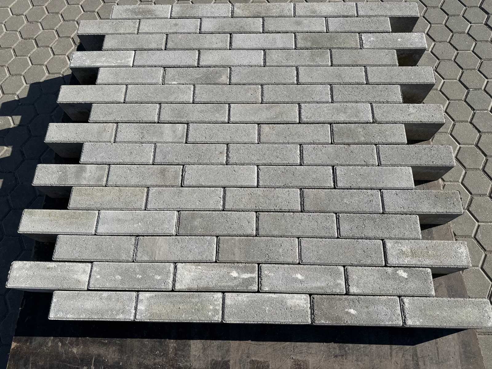 Afmetingen circa: 21x6,8x10 cm. Betonklinker. Kwaliteit: A-Keus. Kleur: Grijs. Aantal pallets: 6. Afhalen van de kavel kan op 13 mei in Hulst - De factuur van Troostwijk dient uiterlijk 5 mei betaalt te zijn. - Bij betaling na deze datum is afhaal alleen mogelijk op afspraak! - Neem voor bezorging uiterlijk 7 mei contact op met veiling@dbtrading.nl, onder vermelding van het kavelnummer, factuur- en afleveradres. - Kosten levering in Nederland - Eerste kavel €110,00 ex BTW - Kavel 2 t/m 5 € 75,00 ex BTW per kavel - Vanaf 6 kavels geldt een vast tarief van €450,00 - Bezorging naar de Waddeneilanden en België op aanvraag! - BELANGRIJK! - Het losadres dient goed bereikbaar te zijn voor een vrachtwagen met trailer. Deze wagen kan maximaal 4 meter naast de wagen lossen. De chauffeur heeft GEEN palletwagen/Kooijaap tot zijn beschikking. Kleur: Grijs Lengte: 21cm Breedte: 6.8cm Dikte: 10mm Materiaal: Betonsteen voor buiten Aantal m² per verpakking: 7.77m² Aantal pakken: 6