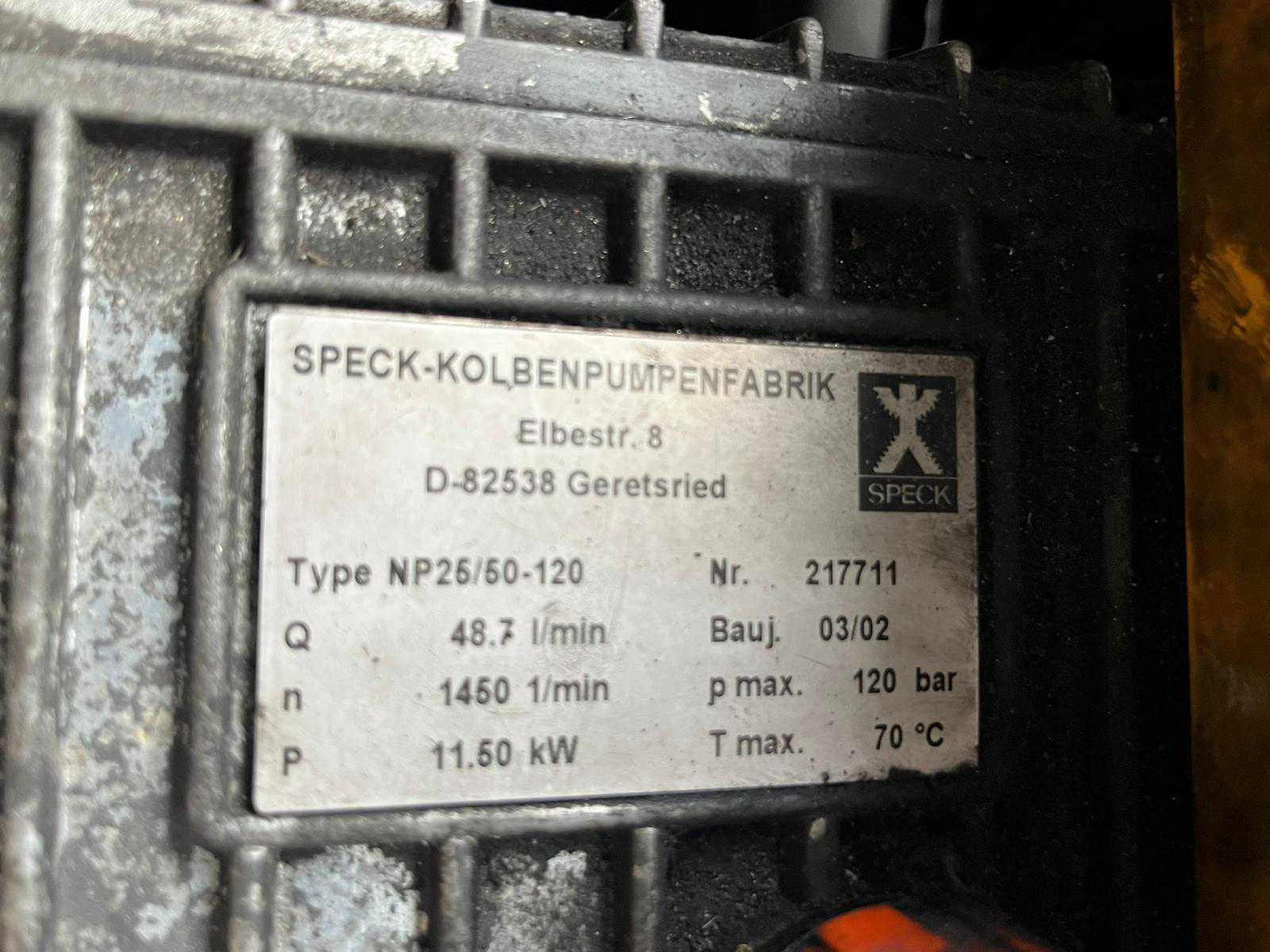 NP25 Speckpomp 140 bar, 50l/min; Kubota dieselmotor; afgelezen urenstand 1327 uur; 600l. watertank; ca. 60m HD slang met lans, 2 nozzles, werkend getest Merk: ROM Model: 600