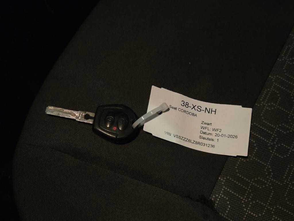 Best-stoel hgt-verst Handgrepen gespoten Spiegel in kleur zij-airbags 1598ccm 77kw bts 2-lagen mica 3 hoofdsteunen a 5-versn wisselbak Airconditioning Antiblokkeersysteem Banden 195/55 r15..v Centr-vergr/afst-bed cruise control Dubbele koplamp dynamo 110A Kopl-hoogte-regeling Remschijf a Remschijf v 256x22 Ruitbed v elektr Slechte weg uitv Stuur hgt-verstel Va 06/2007 Velgen lm 6 j x 15 Standaard opties Airbag bestuurder Airbag passagier Airbag(s) side voor Airco Alarm klasse 1(startblokkering) Bestuurdersstoel in hoogte verstelbaar centrale vergrendeling met afstandsbediening Cruise control Elektrische ramen voor Lichtmetalen velgen 15" Stuur verstelbaar Stuurbekrachtiging Kenteken: 38-XS-NH Merk: SEAT Model: Cordoba Type: 1.6-16V Trendstyle Bouwjaar: 2007 Afgelezen kilometerstand: 322770km Cilinderinhoud: 1598cc Vermogen (kW): 77kW Brandstof: Benzine Chassisnummer: VSSZZZ6LZ8R031236 NAP status: Onlogisch Datum eerste toelating: 2007-09-15 Datum eerste toelating (NL): 2007-09-15 APK vervaldatum: 2025-09-04 Vermogen (pk): 103hp Aandrijving: Start en rijdt Aantal zitplaatsen: 5 Maximaal trekgewicht ongeremd: 550kg Maximaal trekgewicht geremd: 1000kg Kleur: zwart Transmissie: Handgeschakeld Emissieklasse: 4 Aantal deuren: 4 Aantal sleutels: 1 Ledig gewicht: 1084kg Bruto BPM (NL): 3508€ Aantal cilinders: 4 Carrosserie: Sedan Nationaliteit documenten: Nederlands Onderhoudshistorie: Aanwezig danwel digitaal Carfax Link: https://was.carfax.eu/v0/api/ccdid/5100016408/svc/201/vinreg/38XSNH/checksum/eyJhbGciOiJIUzI1NiIsInR5cCI6IkpXVCJ9.eyJleHAiOjE3NzU0NzUwOTZ9.kHMwl6KOrqHP-Rs-lrmGWlV4grZgmsUl4HT8WGXNOH8 Start en rijdt: Start and drive startinformatie : Start en rijdt Self drive export possible : true Airconditioning: true Navigatie: false LED-koplampen: false