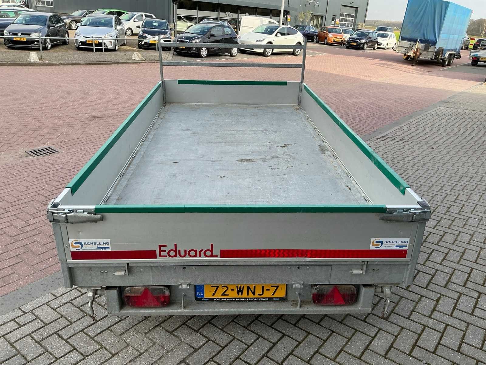 Voorzien van: aluminium zijborden, stalen laadvloer, aluminium disselkist, Elektrische bediend, zijwaarts en achterwaarts kippend, 13 polige stekker. Merk: Eduard Bouwjaar: 2025 Chassisnummer: YC335184024021174 Aantal assen: 2 Laadbak afmeting l: 360cm Laadbak afmeting b: 187cm Ledig gewicht: 907kg Laadvermogen: 2593kg Datum eerste toelating: 2025-06-13 Datum eerste toelating (NL): 2025-06-13 Kenteken: 72-WNJ-7 Lengte: 510cm