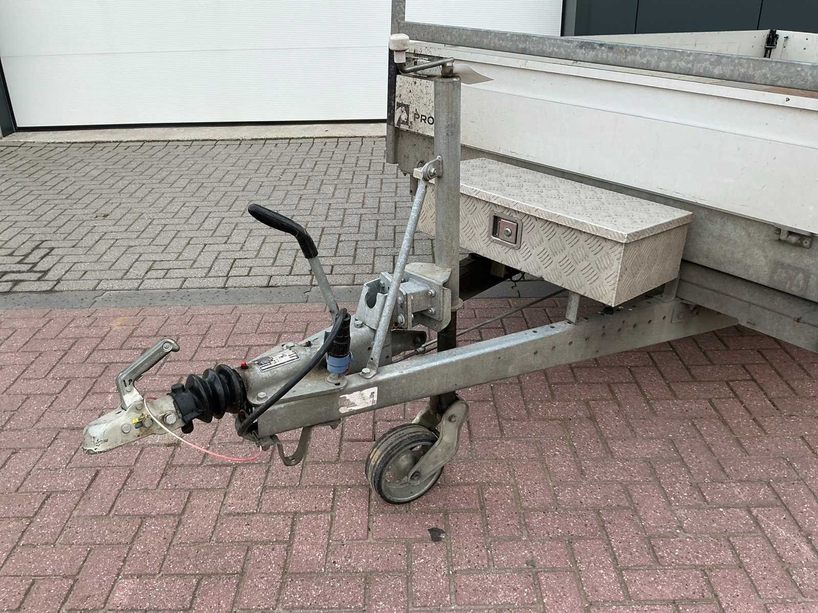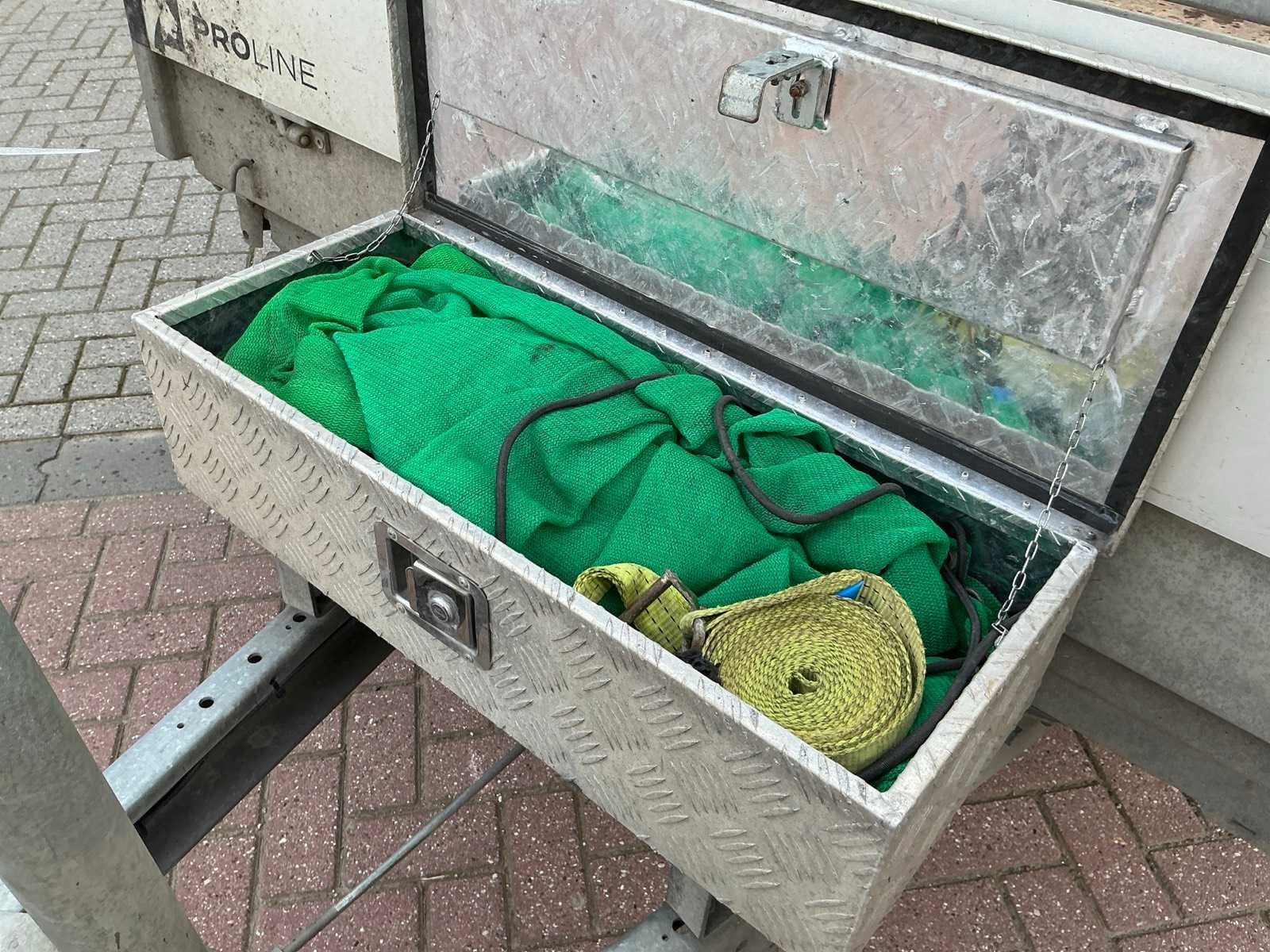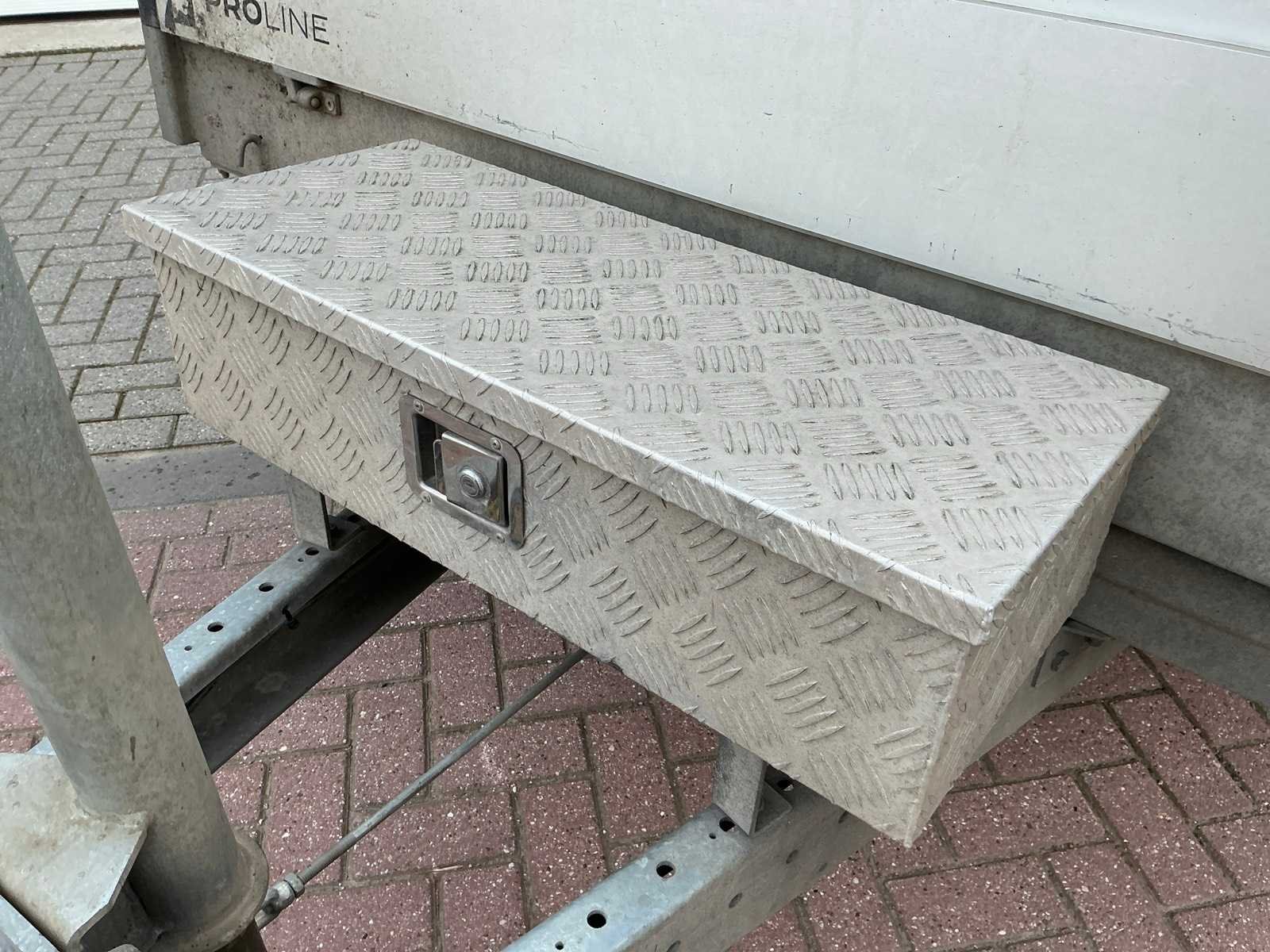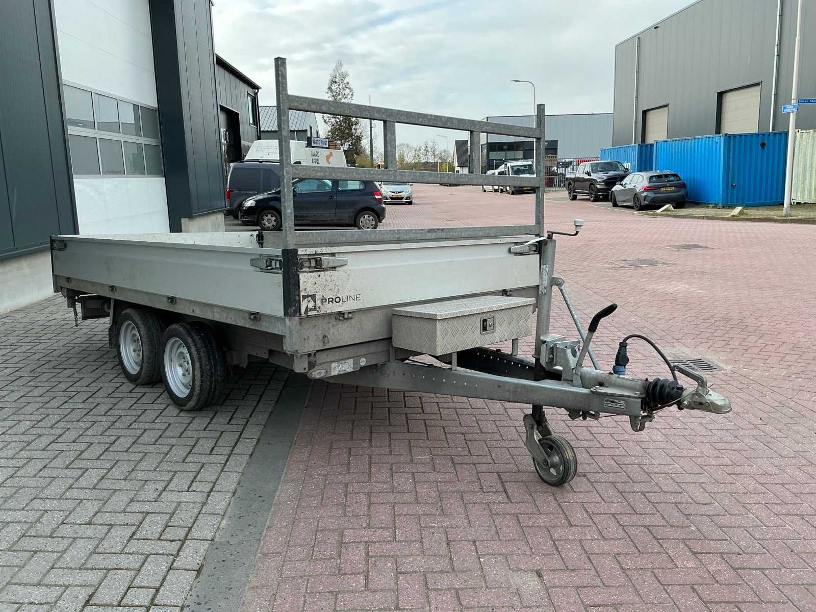 Voorzien van: aluminium zijborden, stalen laadvloer, aluminium disselkist. Elektrische bediend, zijwaarts en achterwaarts kippend. 13 polige stekker. Merk: Proline Bouwjaar: 2020 Chassisnummer: SP423KP20005706 Aantal assen: 2 Laadbak afmeting l: 335cm Laadbak afmeting b: 190cm Ledig gewicht: 945kg Laadvermogen: 1755kg Datum eerste toelating: 2020-03-13 Datum eerste toelating (NL): 2020-03-13 Kenteken: 87-WV-XL Lengte: 505cm