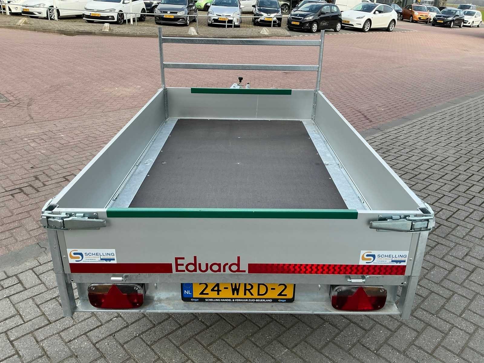 Voorzien van: aluminium zijborden, houten laadvloer, 13 polige stekker. Merk: Eduard Bouwjaar: 2024 Aantal assen: 1 Laadbak afmeting l: 257cm Laadbak afmeting b: 155cm Ledig gewicht: 282kg Laadvermogen: 1068kg Kenteken: 24-WRD-2 Lengte: 387cm