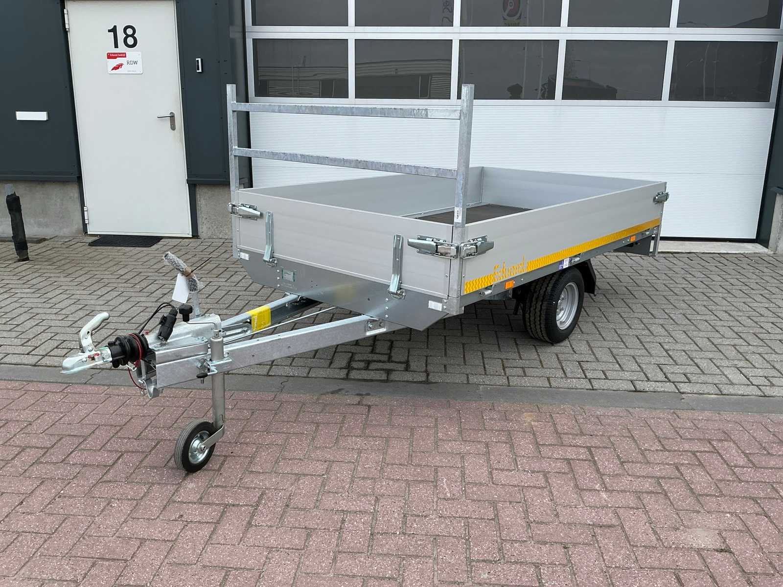 Voorzien van: aluminium zijborden, houten laadvloer, 13 polige stekker. Merk: Eduard Bouwjaar: 2024 Chassisnummer: YC325143424021171 Aantal assen: 1 Laadbak afmeting l: 255cm Laadbak afmeting b: 150cm Ledig gewicht: 262kg Laadvermogen: 1088kg Kenteken: 66-WNJ-7 Lengte: 385cm