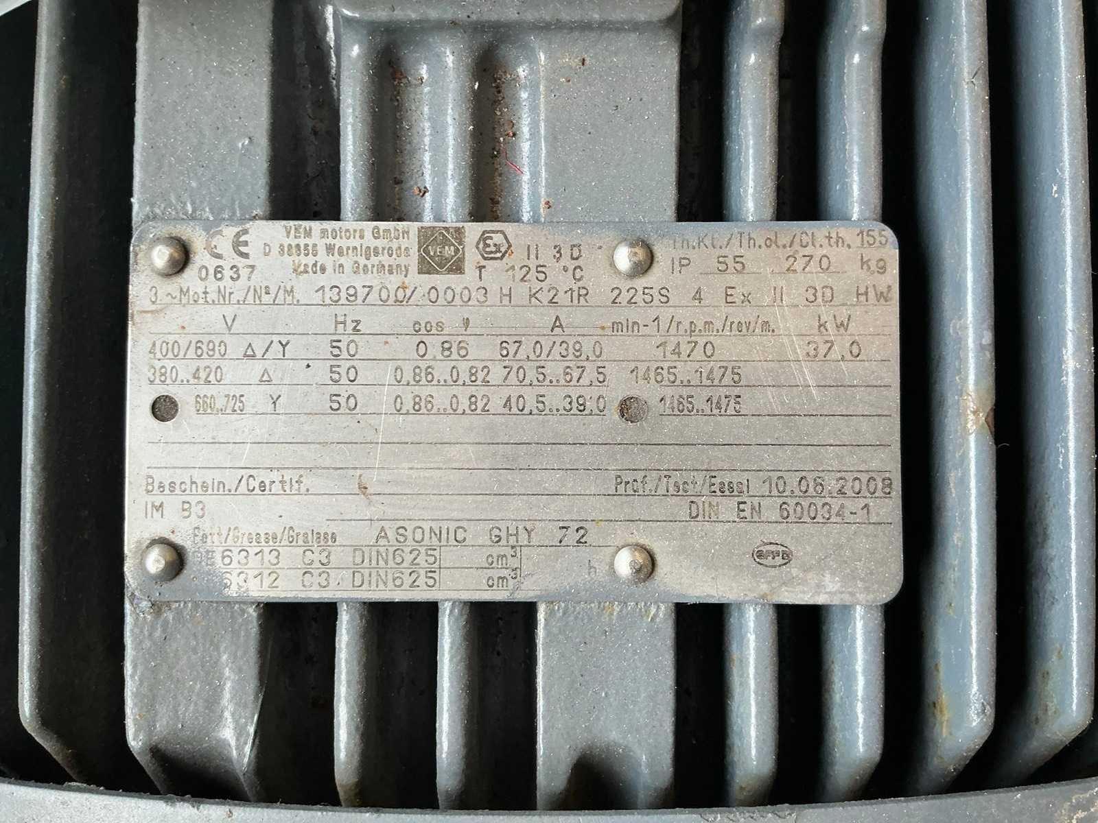 Merk: VEM Product type: K21R 225S 4 Aansluiting: 400V Motorvermogen (kW): 37kW