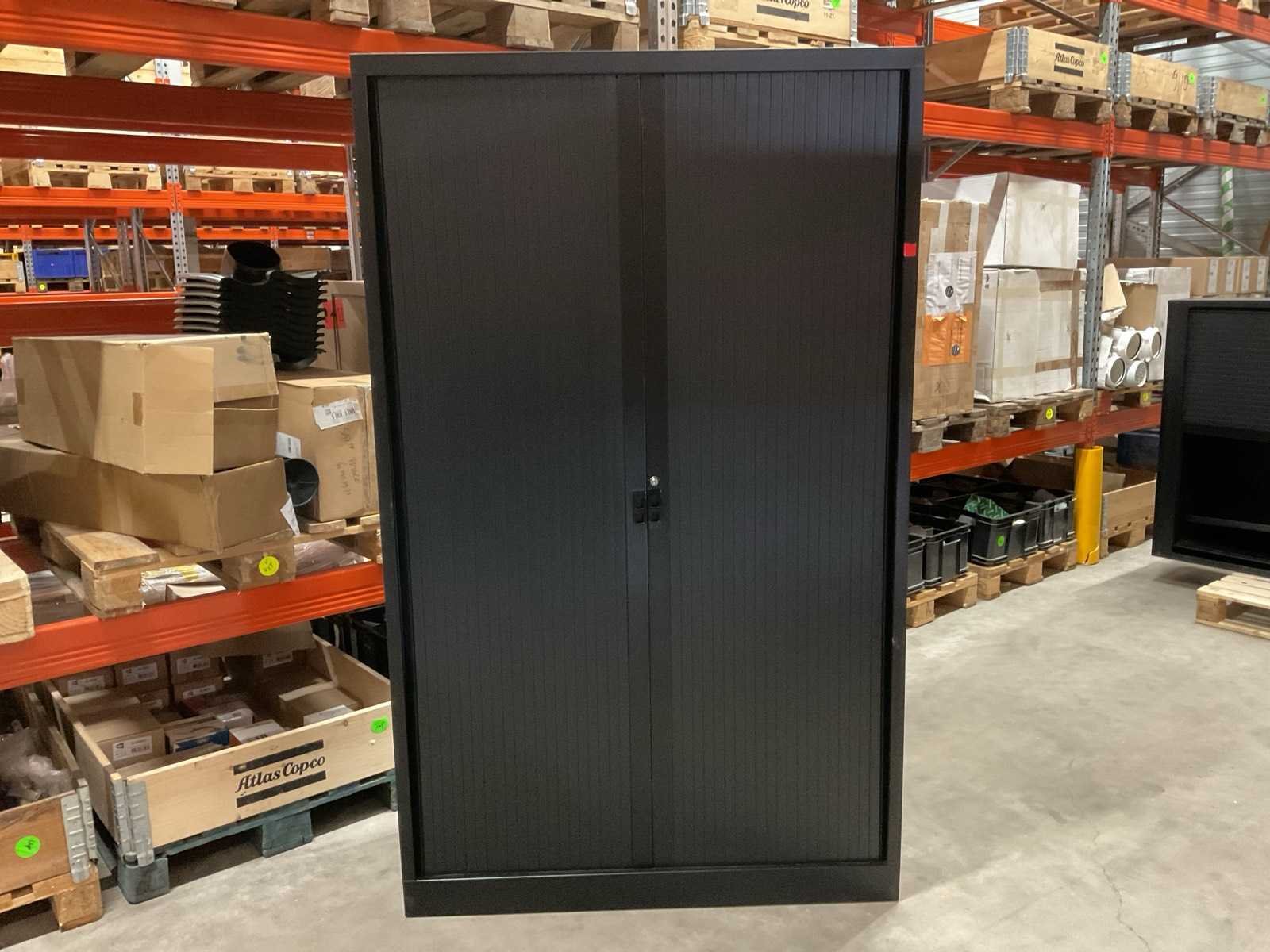 Met kunststof lamellen en 3x legbord. Kleur: Zwart Lengte: 120cm Breedte: 45cm Hoogte: 198cm Materiaal: Metaal