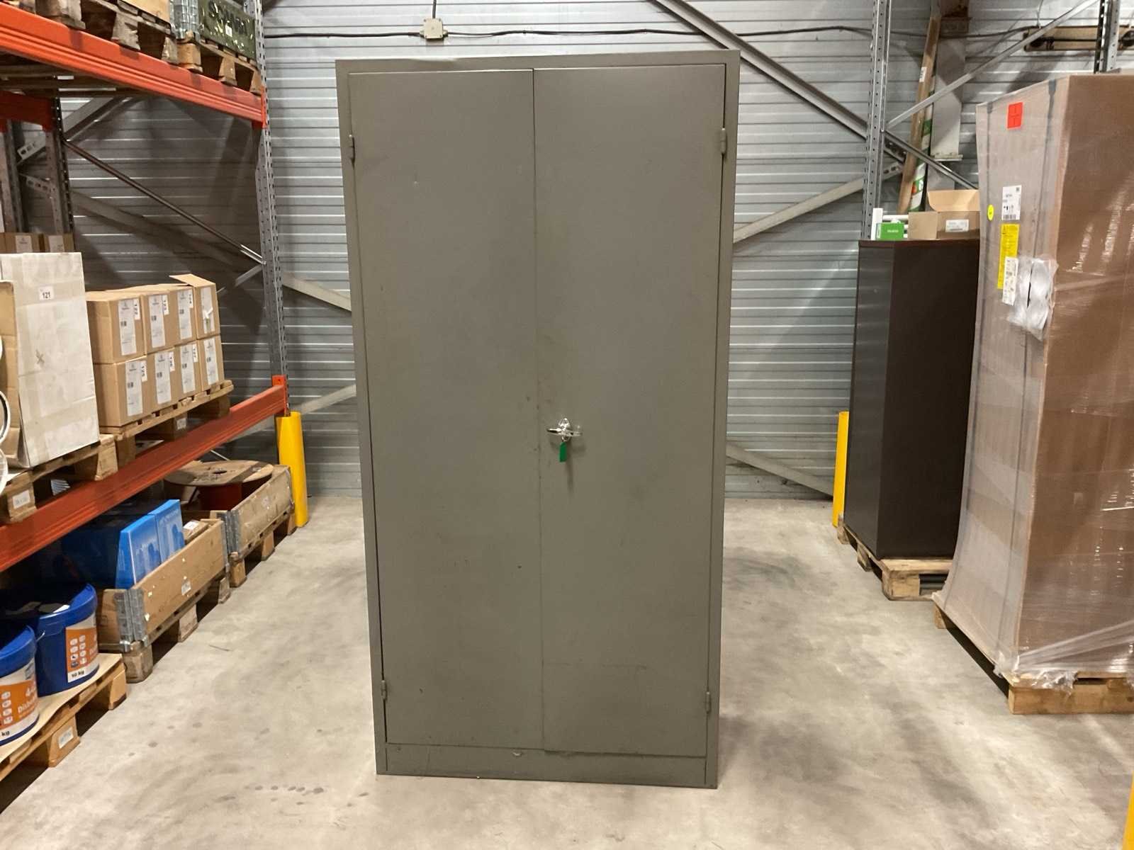 Beschadigd waardoor deuren niet sluiten. Lengte: 98cm Breedte: 40cm Hoogte: 195cm Materiaal: Metaal
