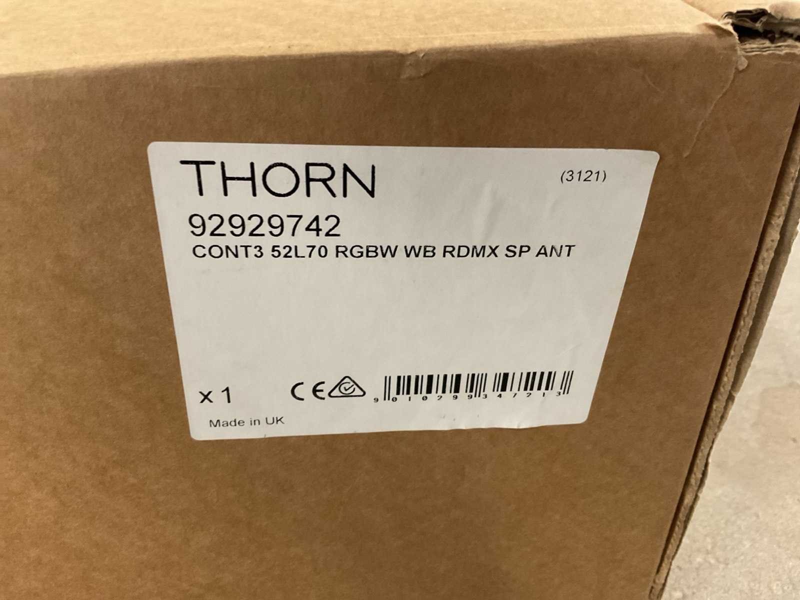 230V Merk: Thorn Model: CONT3 52L70 RGBW Met lichtbron: true Wattage: 80W Lichtbron: LED Kleur: Antraciet Lengte: 39.7cm Breedte: 20.6cm Hoogte: 39.7cm