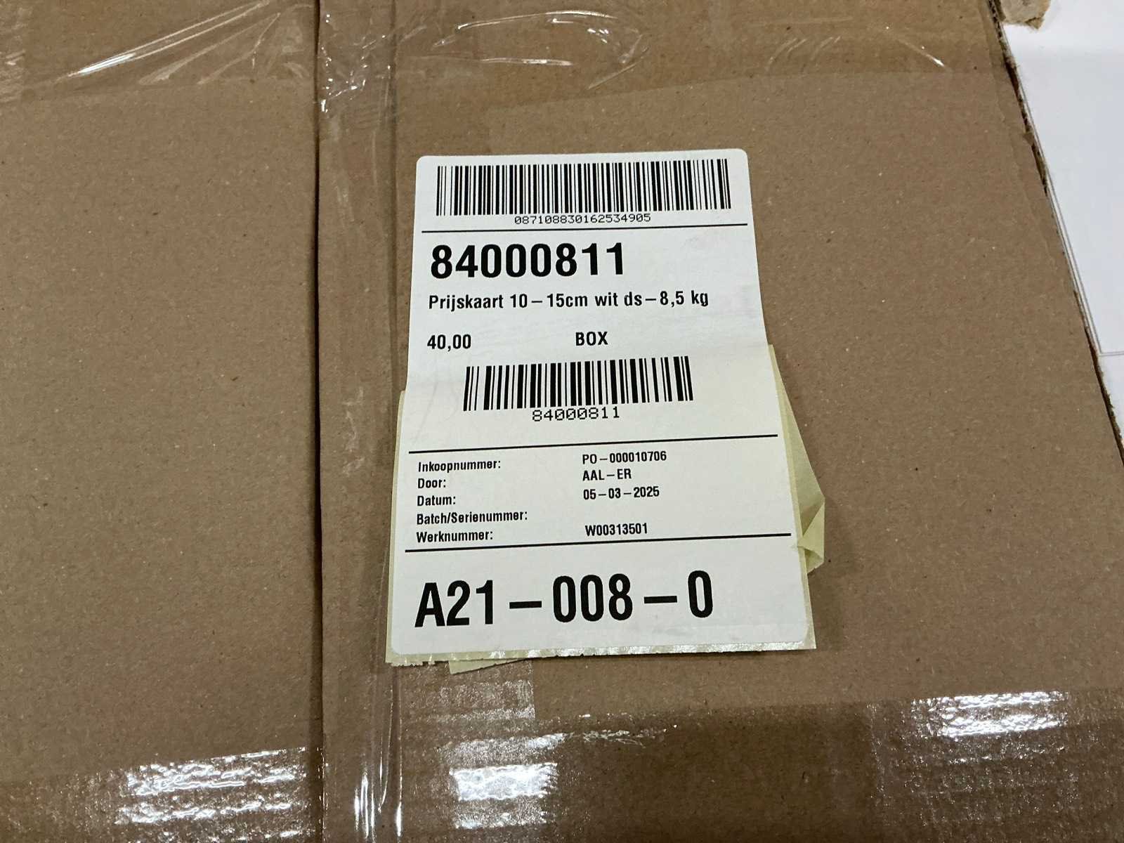 Partij prijskaarten 10-15cm wit 8,5kg per doos (40x)