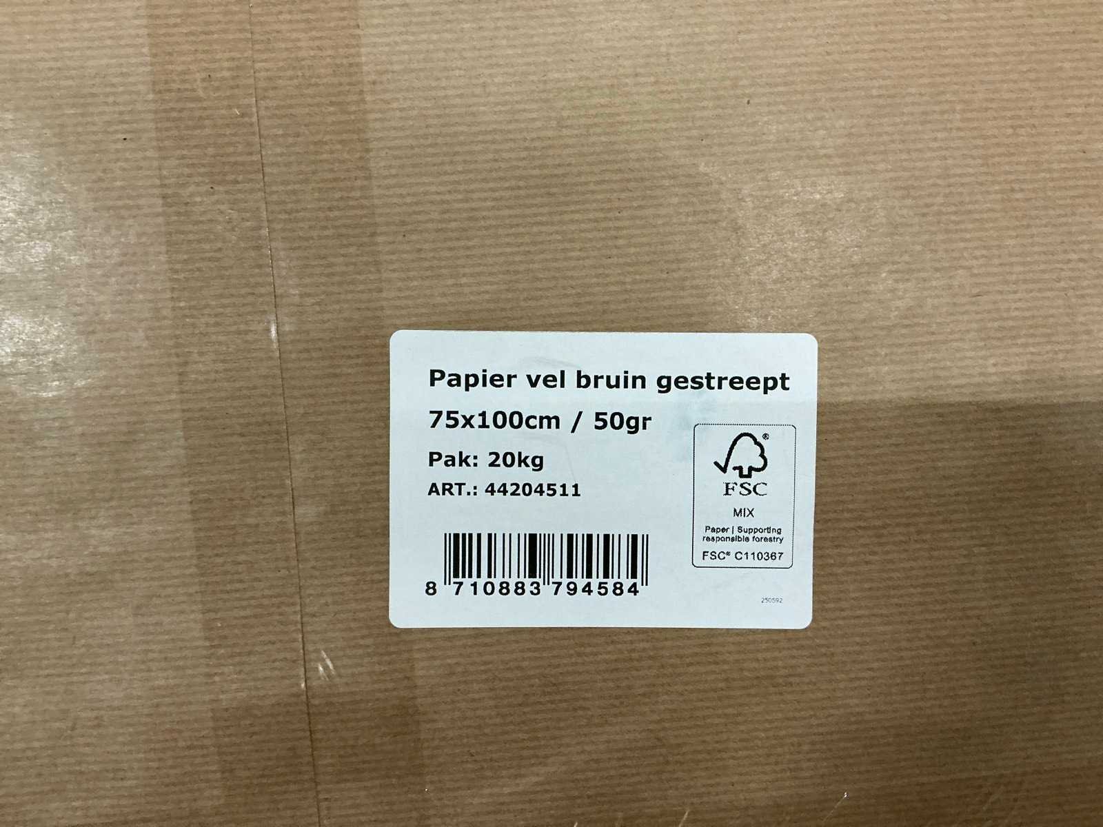 Partij papieren vellen bruin gestreept 75x100cm 20kg per pak (10x)