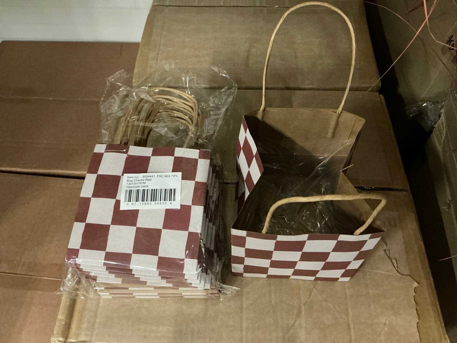 Partij bags checks red 13x13x13cm brown craft paper (1440x)