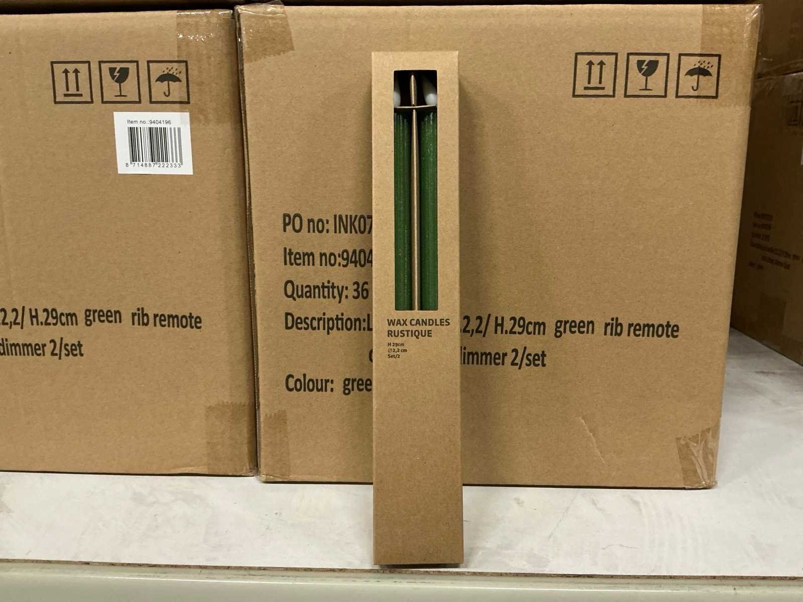Partij led candles wax green rib ø2,2xh29cm 2/set (144x)