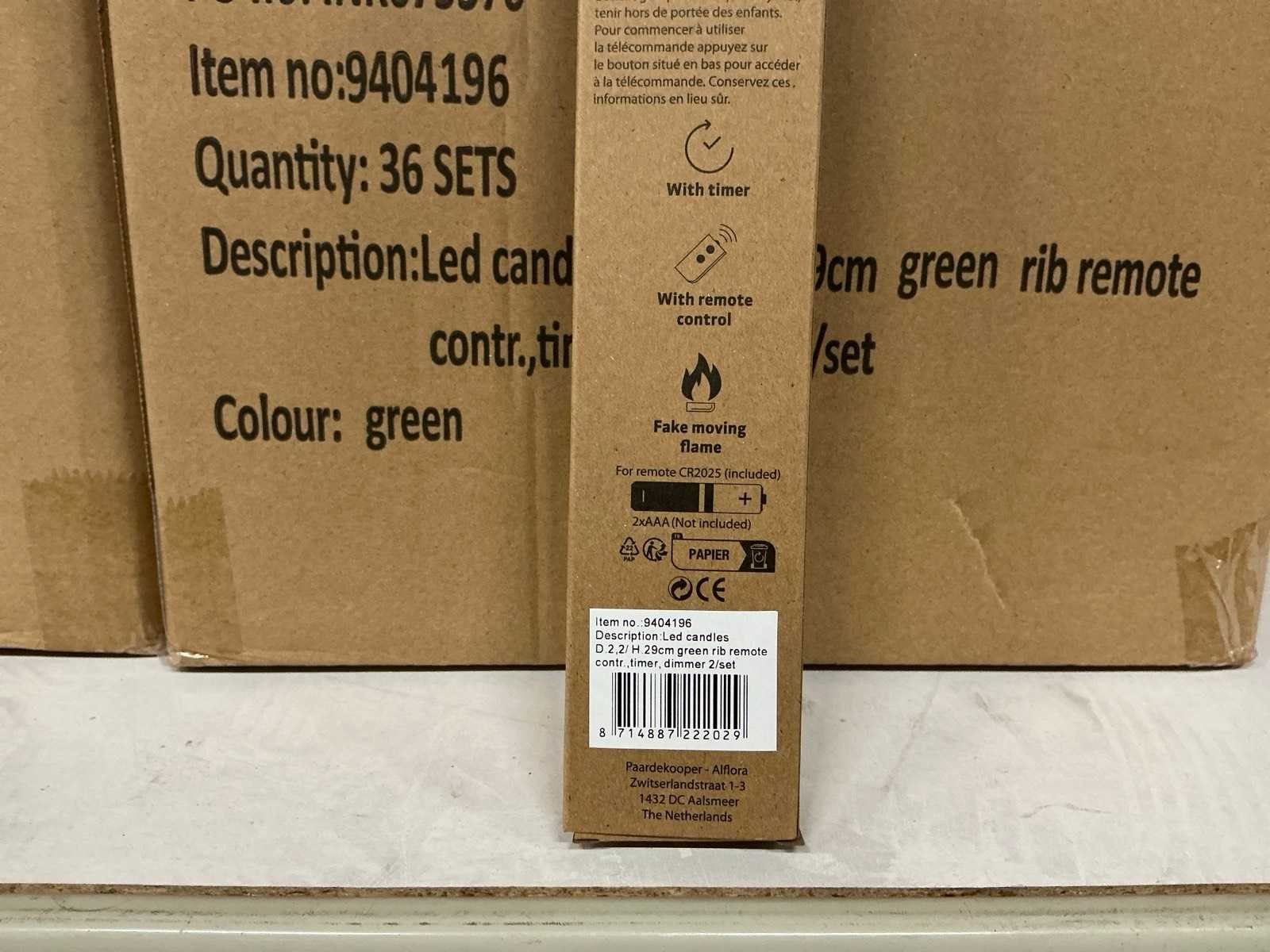 Ø2,2xH29cm. 144 sets, per set 2 kaarsen = totaal 288 kaarsen.