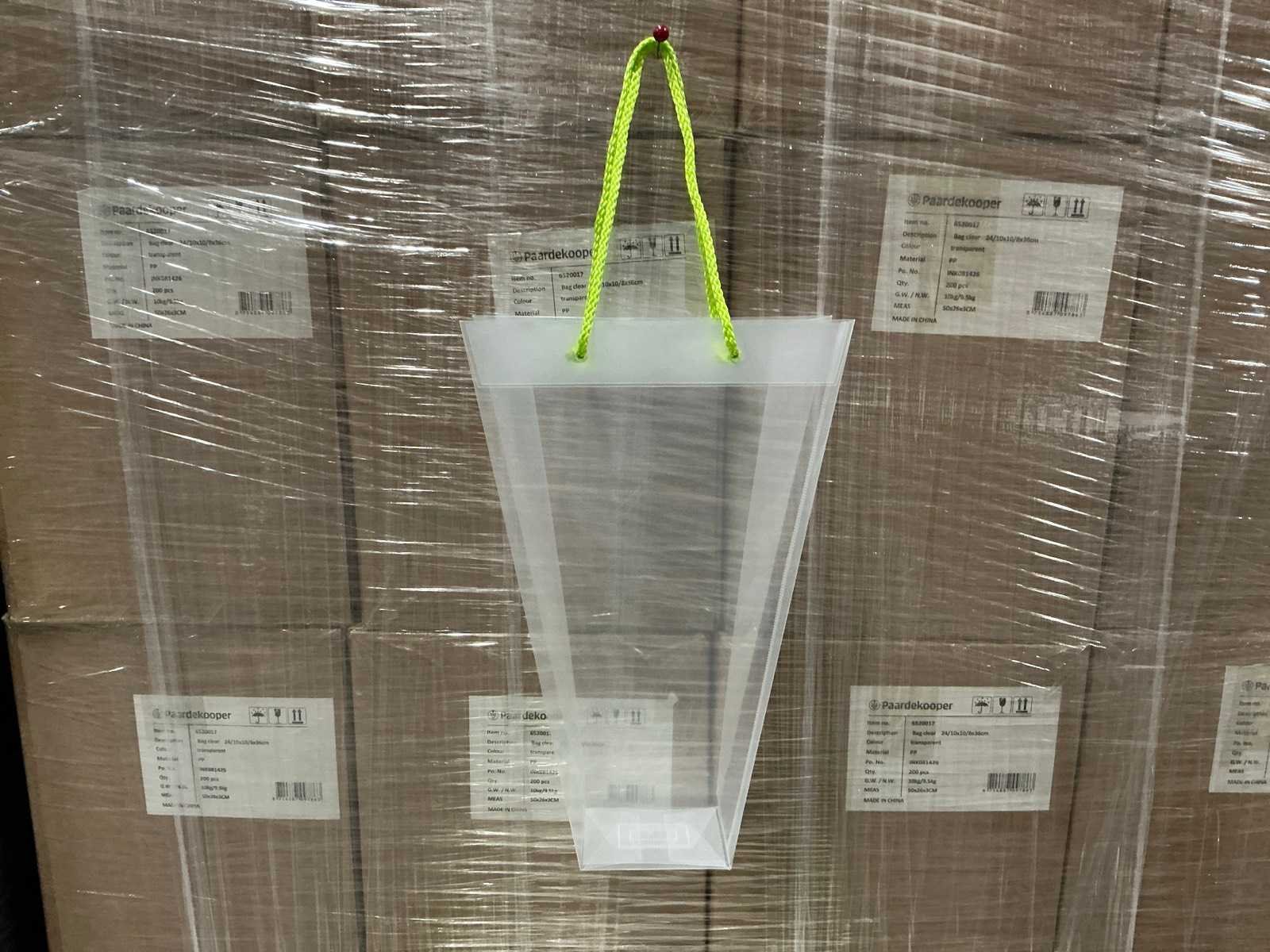 Partij bag clear 24/10x10/8x36cm koord lichtgroen (9600x)