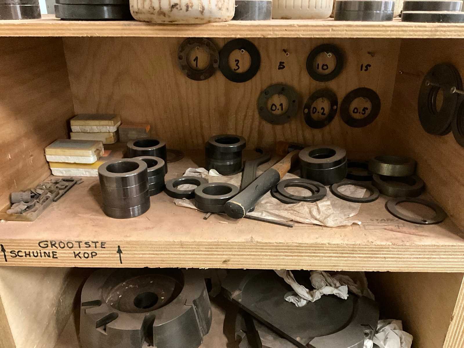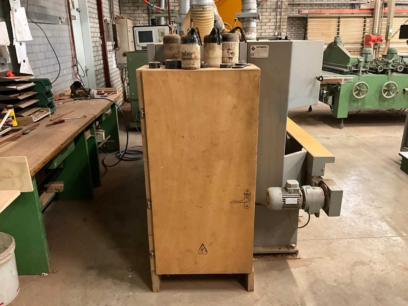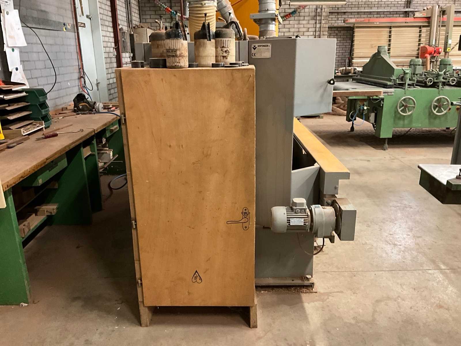 Inclusief houten kast met diverse toebehoren, waaronder freeskoppen Merk: Vertongen Type: Pentho C4 Bouwjaar: 1998 Serienummer: 130398 Aantal assen: 4 Aantal freesassen: 3 Freesas Ø: 40mm Aantal zaagassen: 1 Zaagblad Ø: 400mm Aansluiting: 400V Machinegewicht: 1640kg Afmeting l: 2800mm Afmeting b: 2400mm Afmeting h: 1600mm