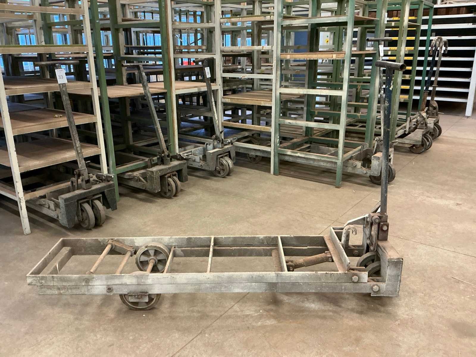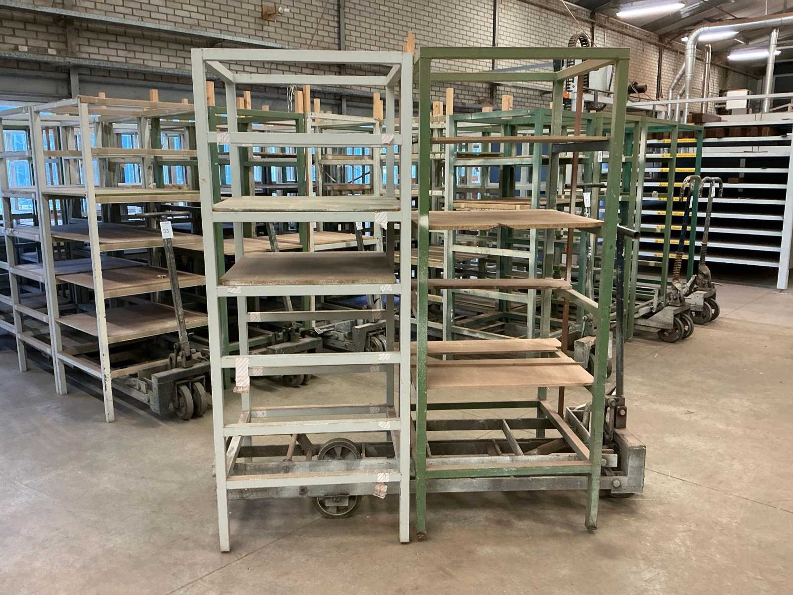 Transportkar Inclusief 9x stapelrekken (80x89x200cm), Heffunctie doormiddel van cilinder (handmatig) Merk: Industriële Afmeting l: 2100cm Afmeting b: 450cm Afmeting h: 350cm