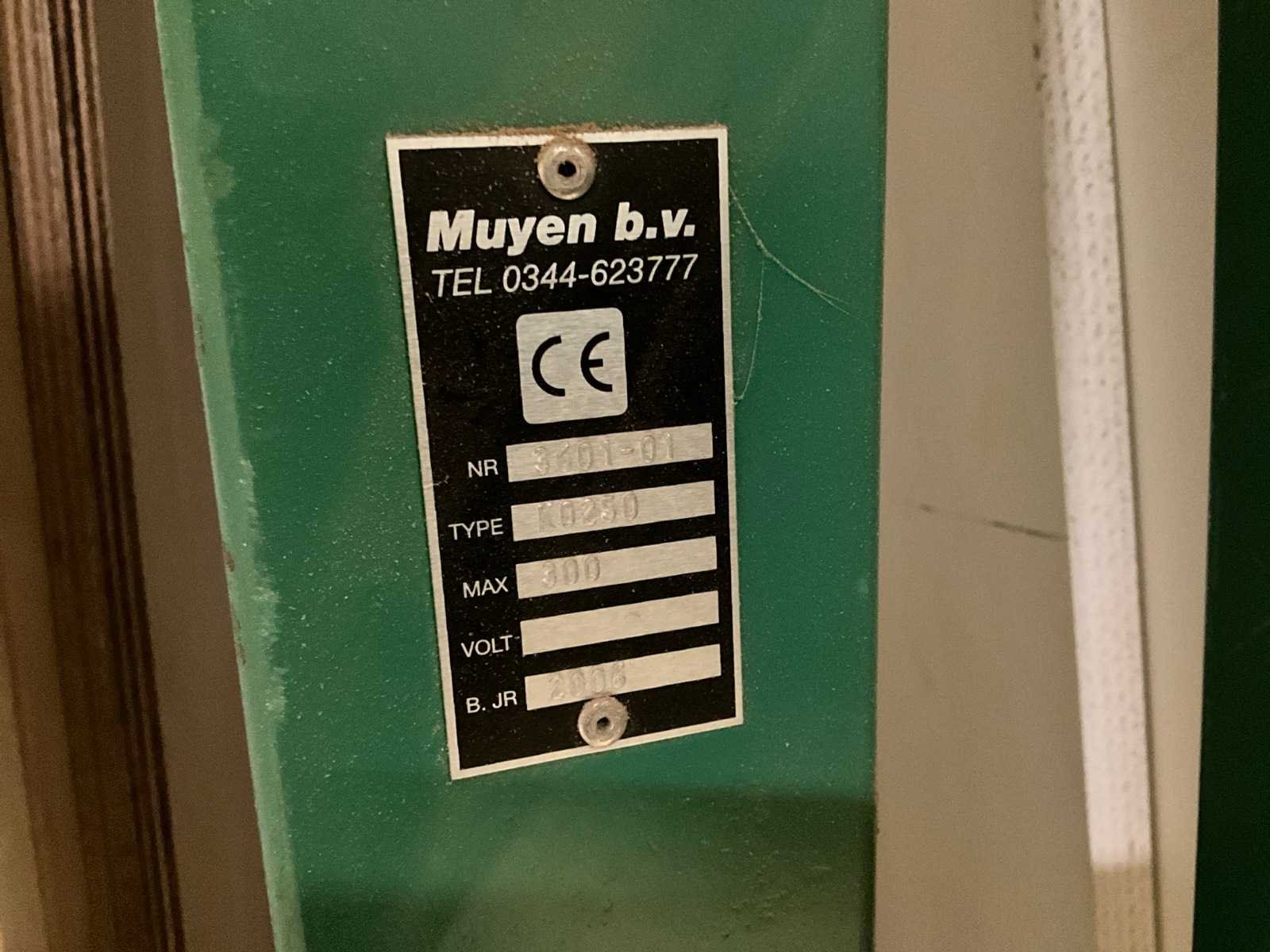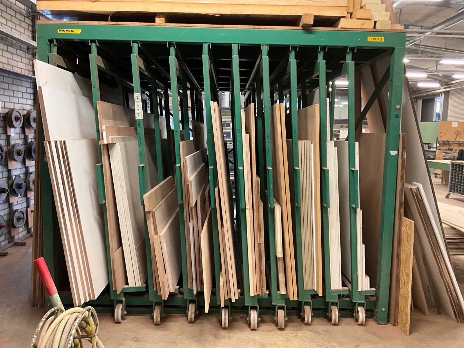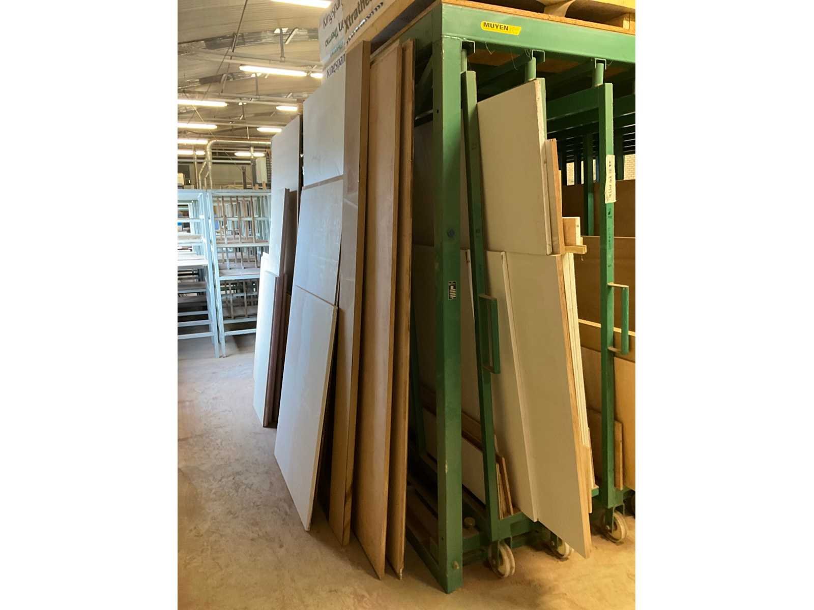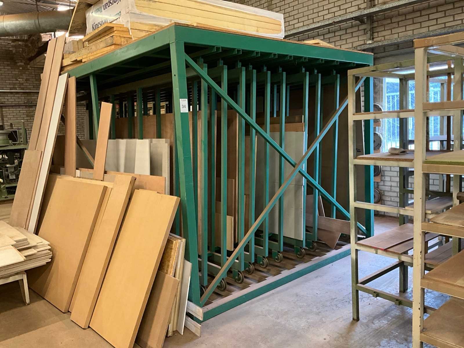 Voorzien van: (10x) glasschuif; Capaciteit per schuif: 300kg, Maximale hoogte: 1900mm; Inclusief inhoud, bestaande uit voornamelijk plaatmateriaal en isolatieplaten Merk: Muyen Type: K0250 Bouwjaar: 2006 Max. sectiebelasting: 300kg Materiaal: Staal Totale afmeting L: 290cm Totale afmeting Breedte: 290cm Totale afmeting Hoogte: 245cm