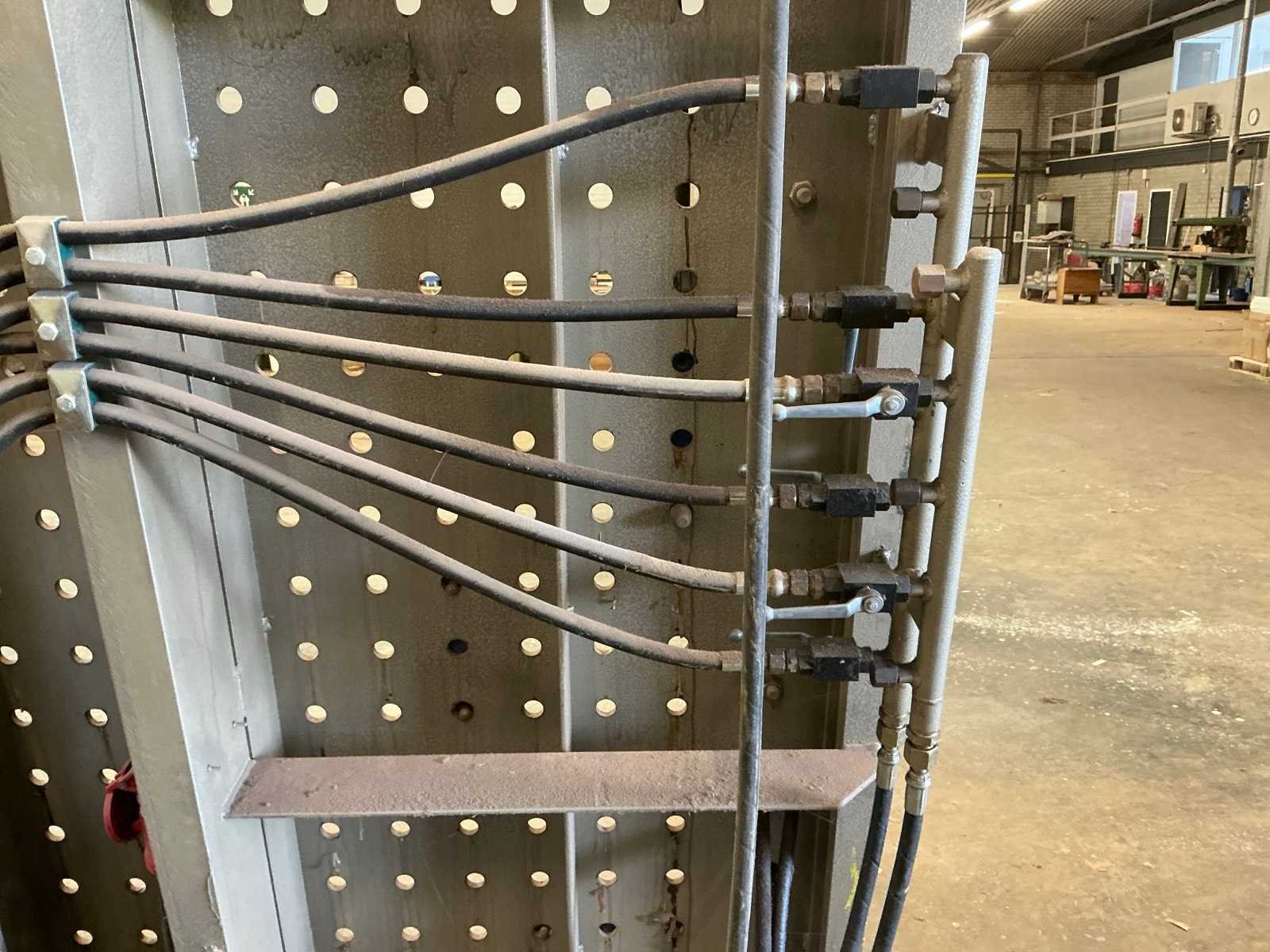 Werktafel afmeting maximaal (536x333x13cm), Hydraulische pomp Merk: DUIN Type: Verticale Serienummer: 3908080 Verticaal: true Horizontaal: true Afmeting l: 125mm Afmeting b: 5550mm Afmeting h: 3600mm Aantal hydraulische perscilinders: 6 Met hydroliek pomp: true Aansluiting: 380V