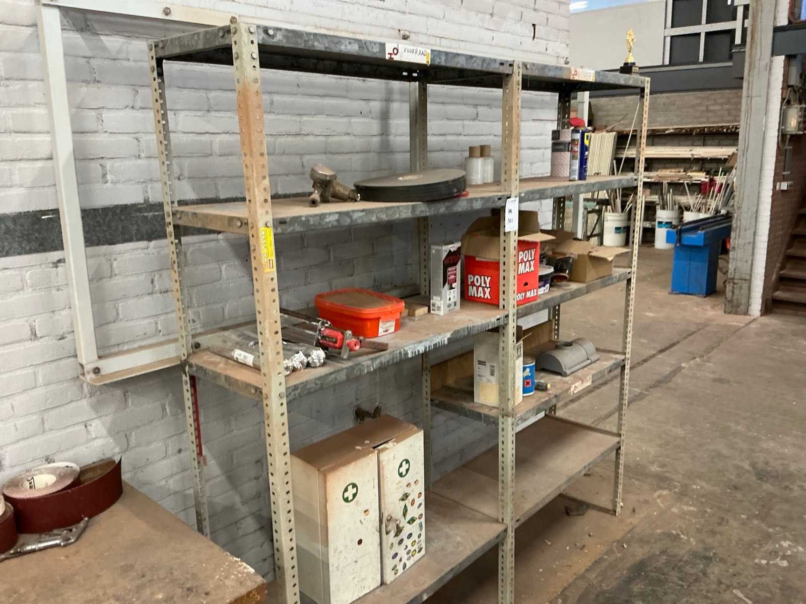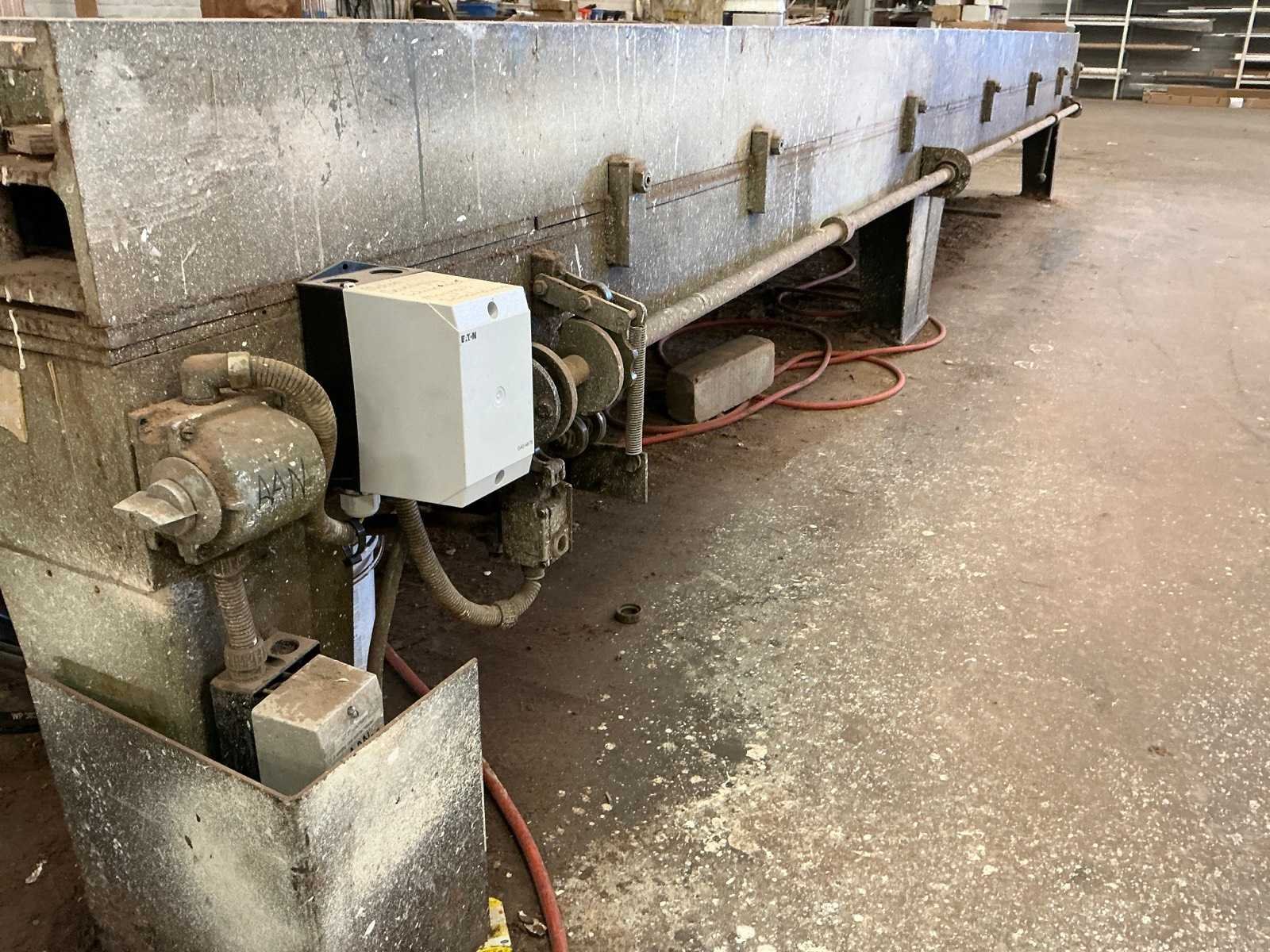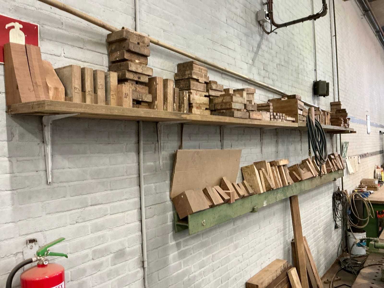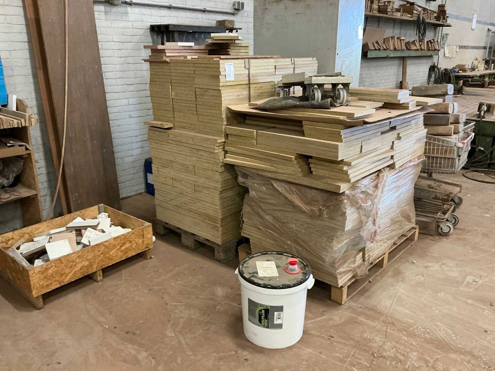 Werktafel afmeting maximaal (307x496x18cm), Hydraulisch pomp, Pneumatische pers, Opspan toebehoren, Diverse deuvels, Werkbank (425x72x85), legbordstelling met inhoud, kast met inhoud, partij houten blokken en hulpstukken Merk: Horizontale Horizontaal: true Afmeting l: 3680mm Afmeting b: 5550mm Afmeting h: 800mm Aantal hydraulische perscilinders: 9 Met hydroliek pomp: true Aansluiting: 380V