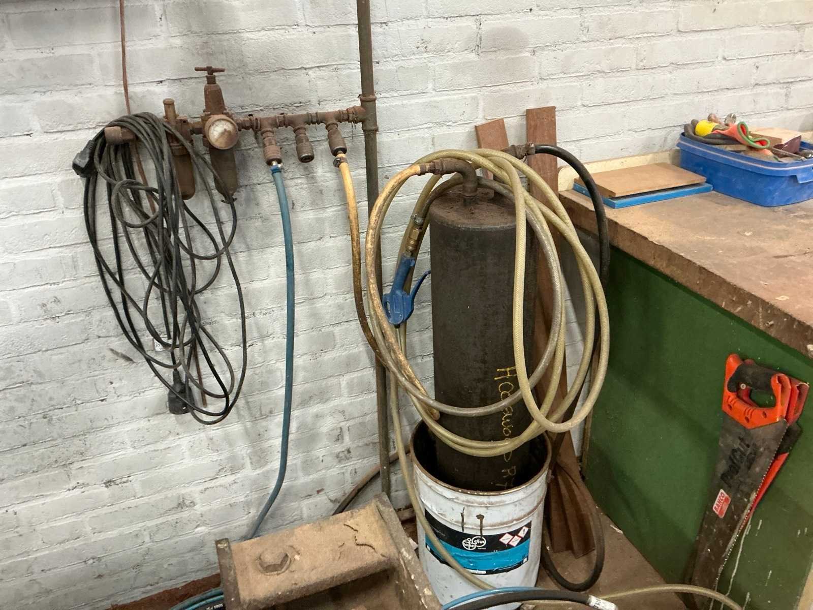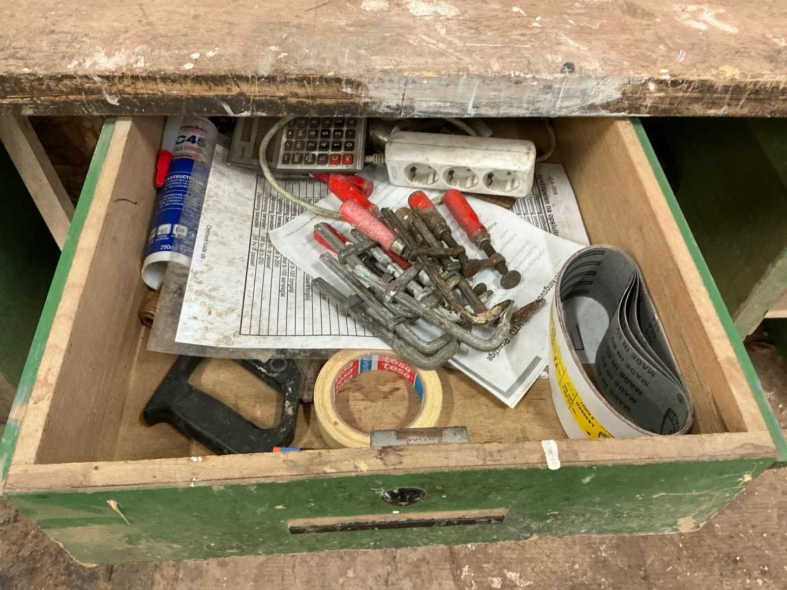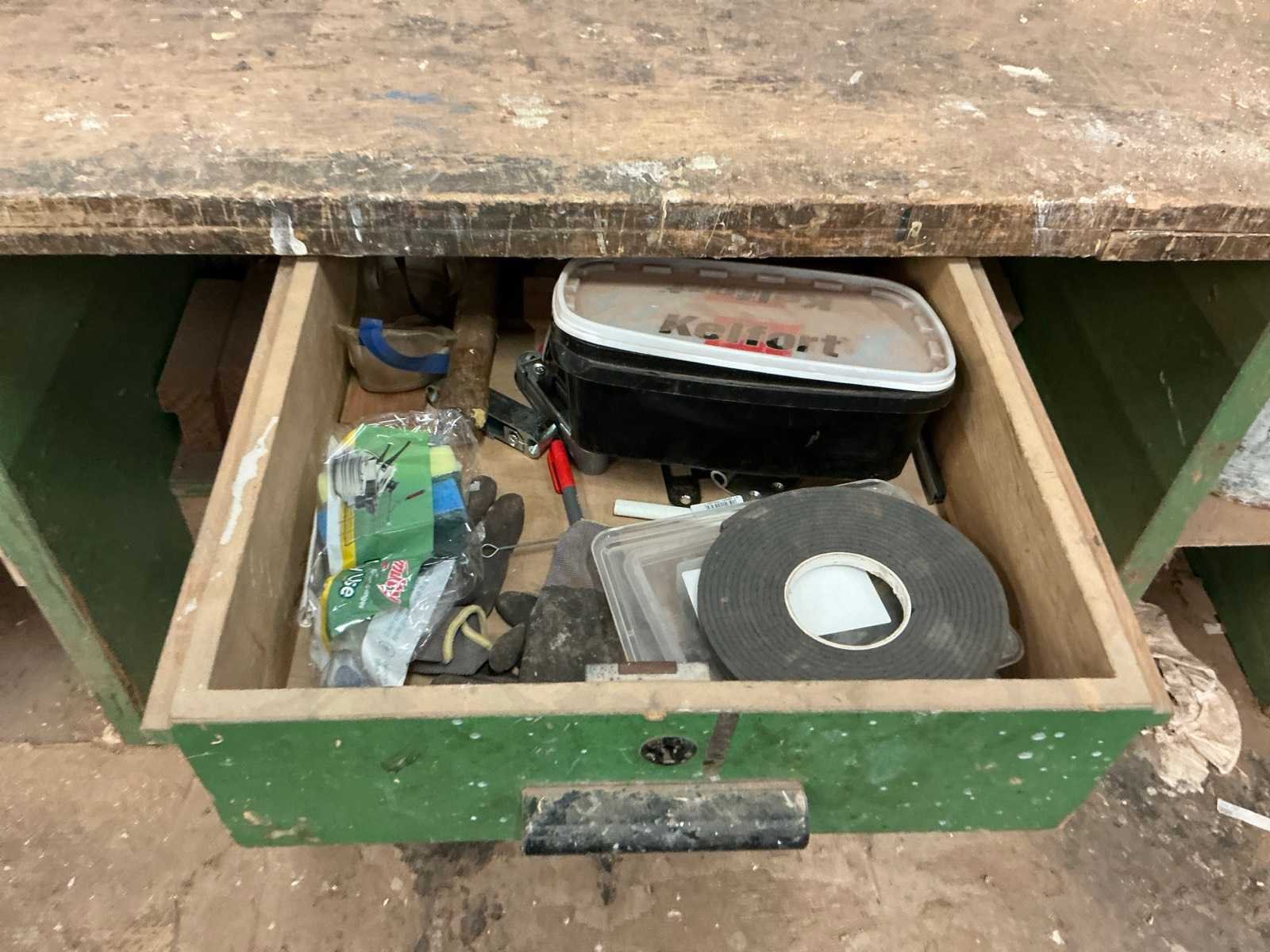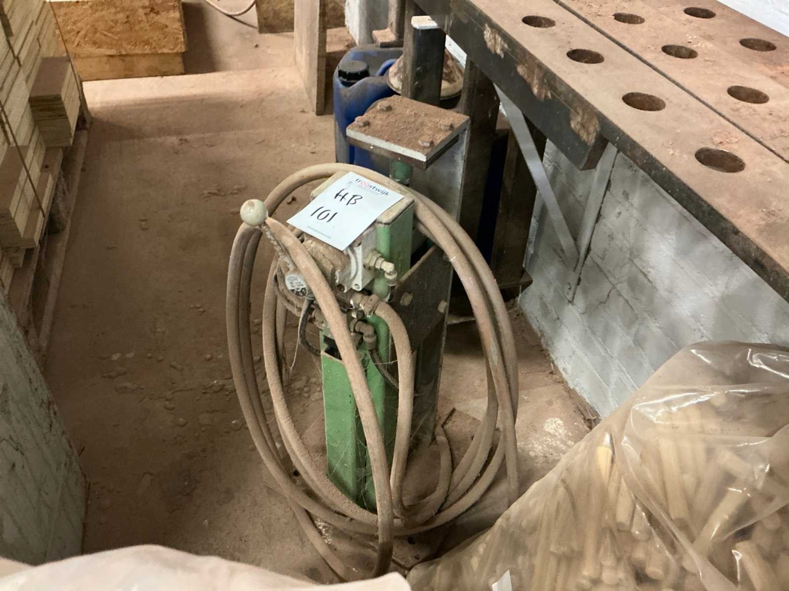 Werktafel afmeting maximaal (307x496x18cm), Hydraulisch pomp, Pneumatische pers, Opspan toebehoren, Diverse deuvels, Werkbank (425x72x85), legbordstelling met inhoud, kast met inhoud, partij houten blokken en hulpstukken Merk: Horizontale Horizontaal: true Afmeting l: 3680mm Afmeting b: 5550mm Afmeting h: 800mm Aantal hydraulische perscilinders: 9 Met hydroliek pomp: true Aansluiting: 380V