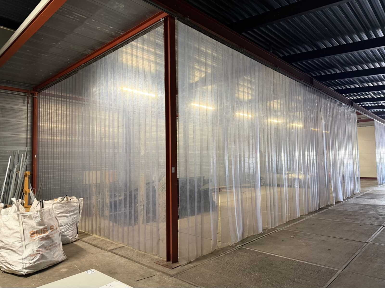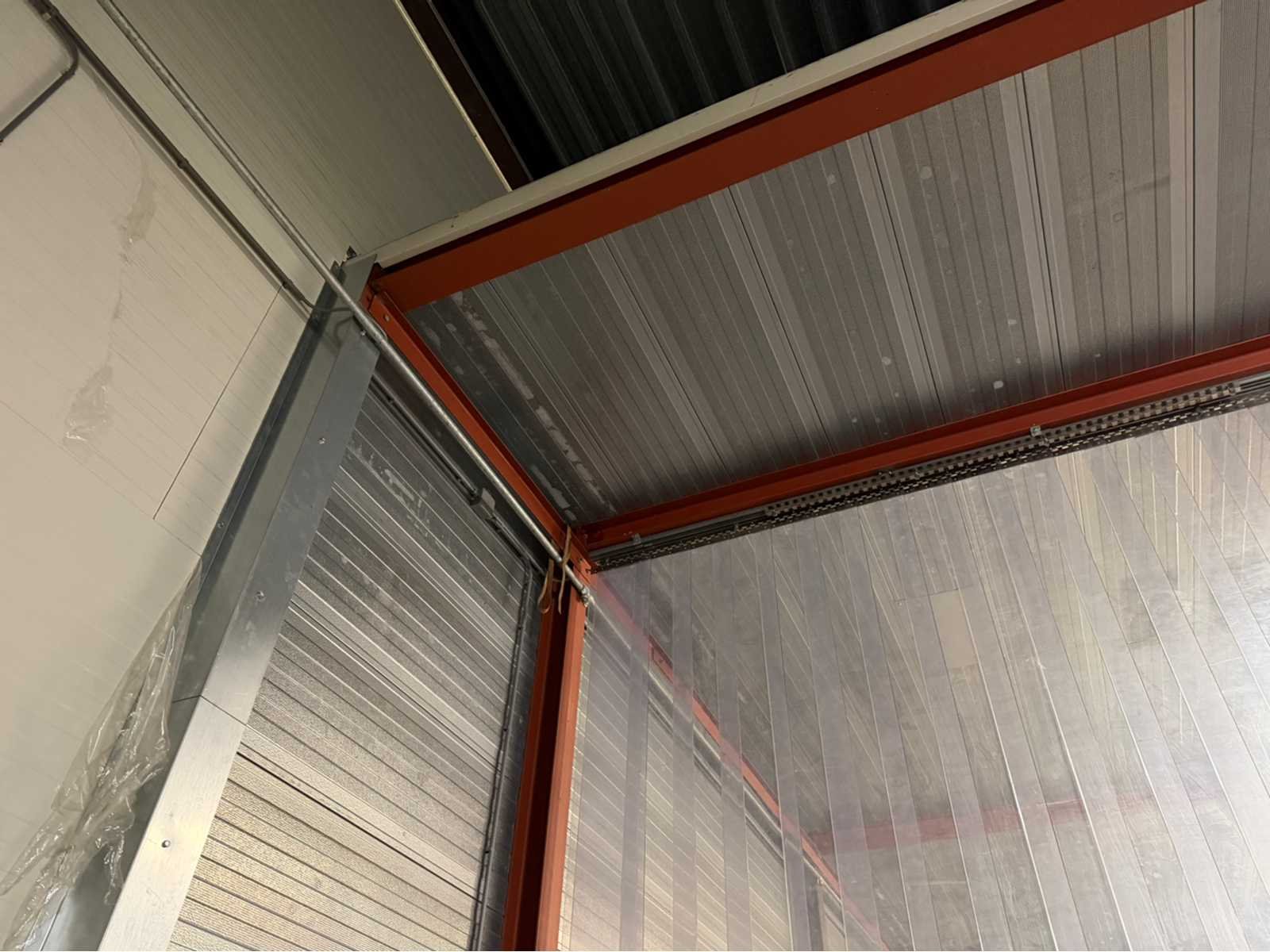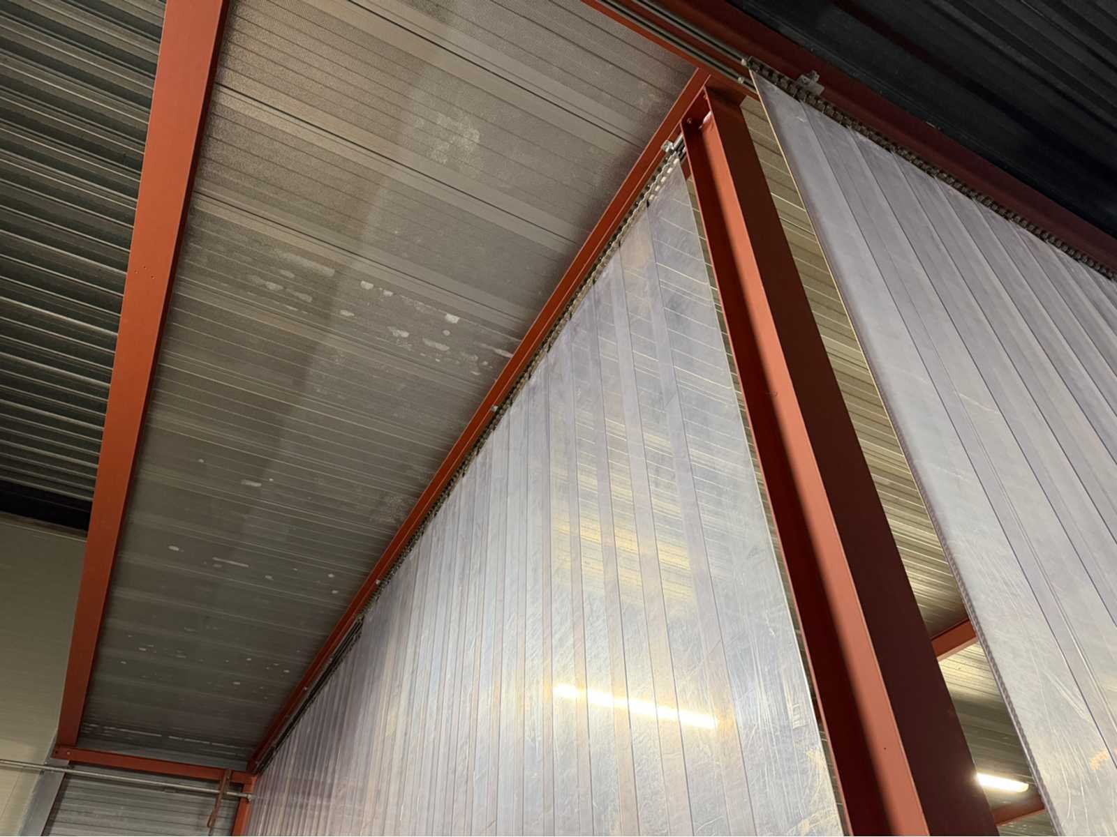 Voorzien van lichtstraal en infrarood verwarmingselement; de constructie is voorzien van een gesloten zijwand en dak, de achterwand dient achter te blijven/te blijven staan; Voorzijde en andere zijkant voorzien van kunststof flappen; afmeting staander H-balk 160mm; het oppervlakte betreft circa 24 bij 8 meter. Materiaal: Staal en panelen Totaal oppervlakte: 192m² Nok hoogte: 5000mm Totale afmeting L: 24000mm Totale afmeting Breedte: 8000mm