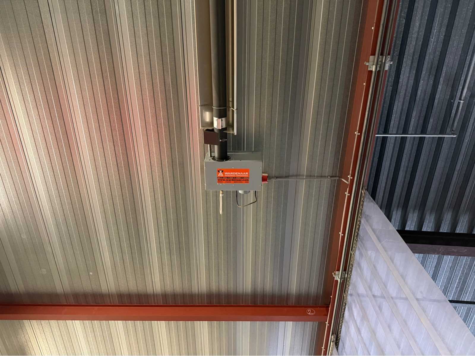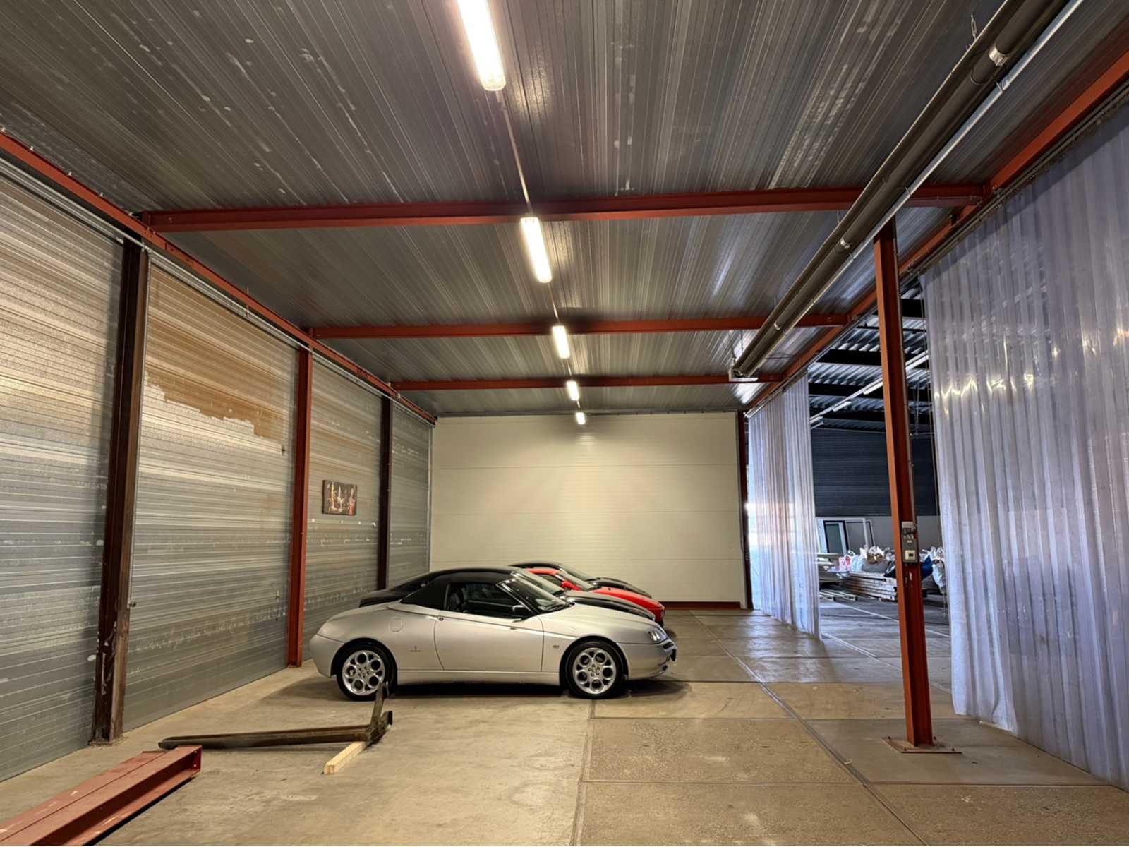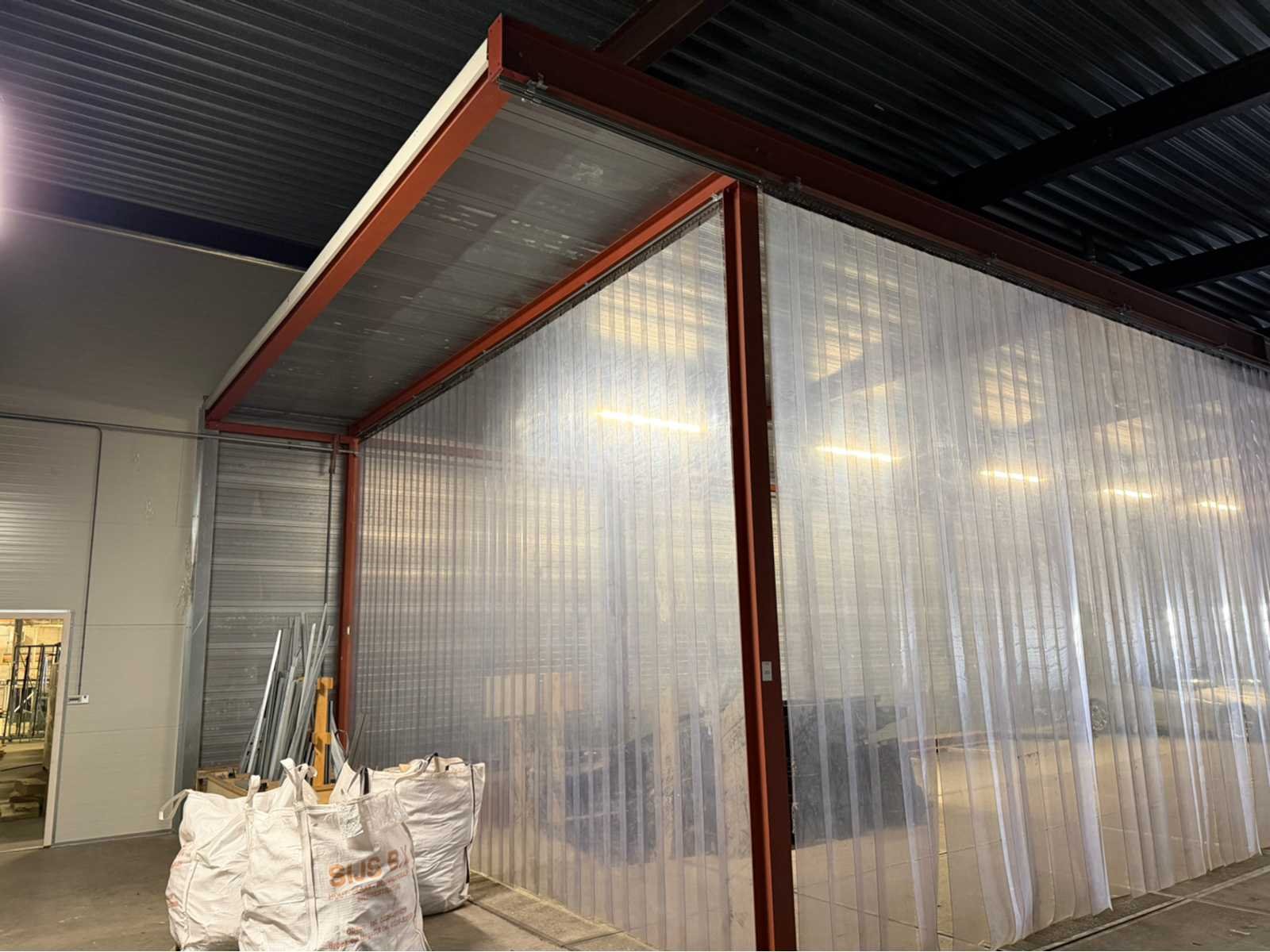 Voorzien van lichtstraal en infrarood verwarmingselement; de constructie is voorzien van een gesloten zijwand en dak, de achterwand dient achter te blijven/te blijven staan; Voorzijde en andere zijkant voorzien van kunststof flappen; afmeting staander H-balk 160mm; het oppervlakte betreft circa 24 bij 8 meter. Materiaal: Staal en panelen Totaal oppervlakte: 192m² Nok hoogte: 5000mm Totale afmeting L: 24000mm Totale afmeting Breedte: 8000mm