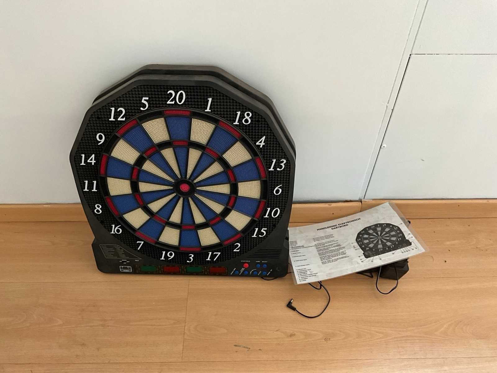 Bestaande uit: 1x bureautafel 90x180cm, 2x bureautafel met twee ladekasten 75x160cm, ladeblok, roldeurkast H195xB120xD47cm, hoekbureau, roldeurkast laag, houten wandkast, dartbord elektrisch, bureaustoelen en beslag