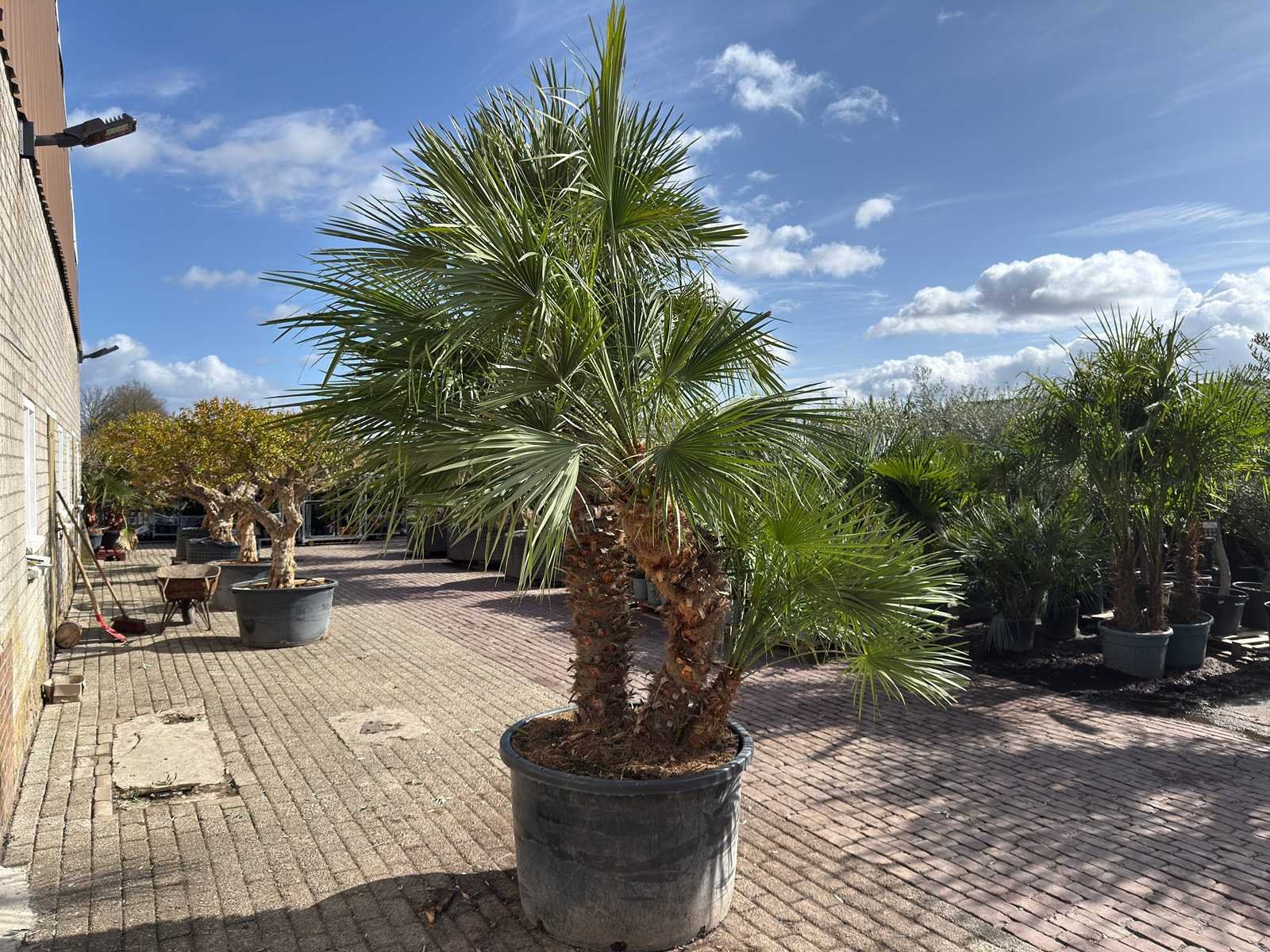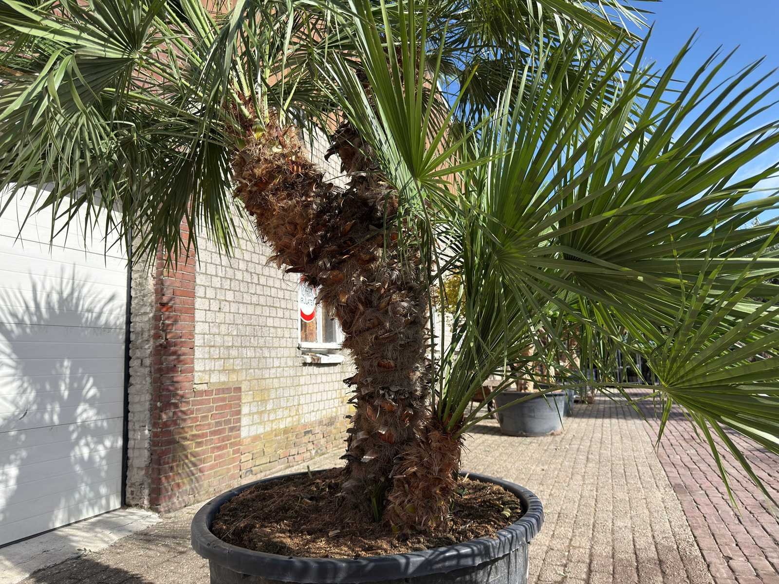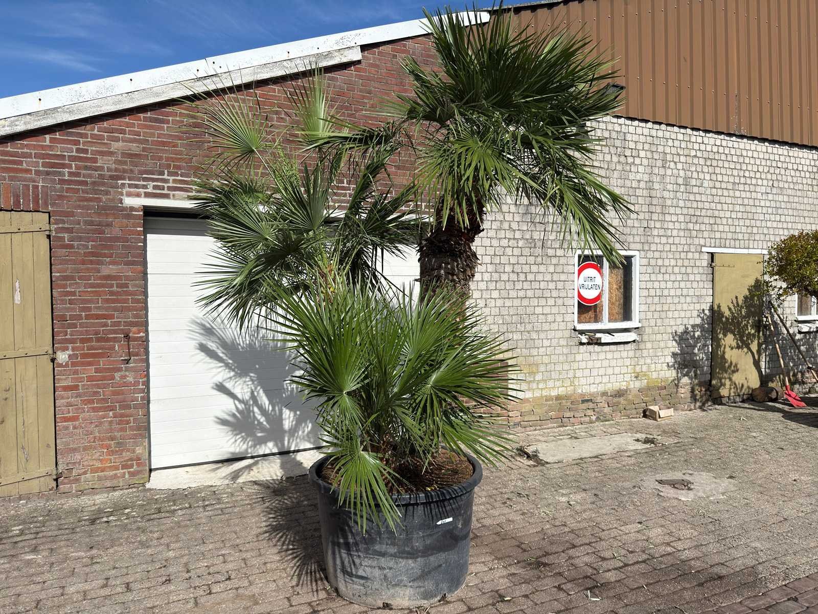 Type: Meerstammig Latijnse benaming: Chamaerops Humilis Hoogte ca.: 290cm In pot: true Stamdikte: 25cm
