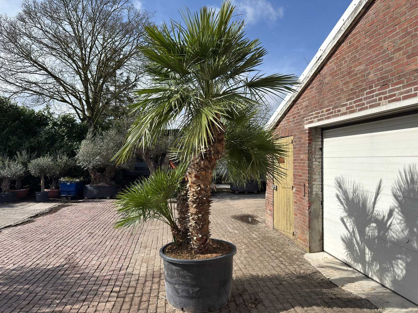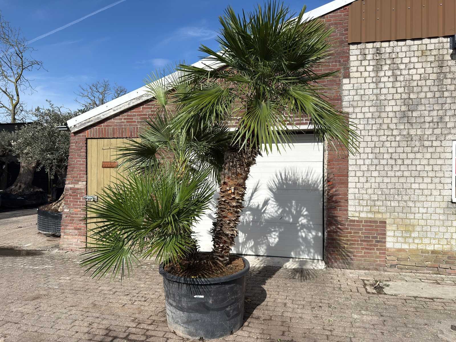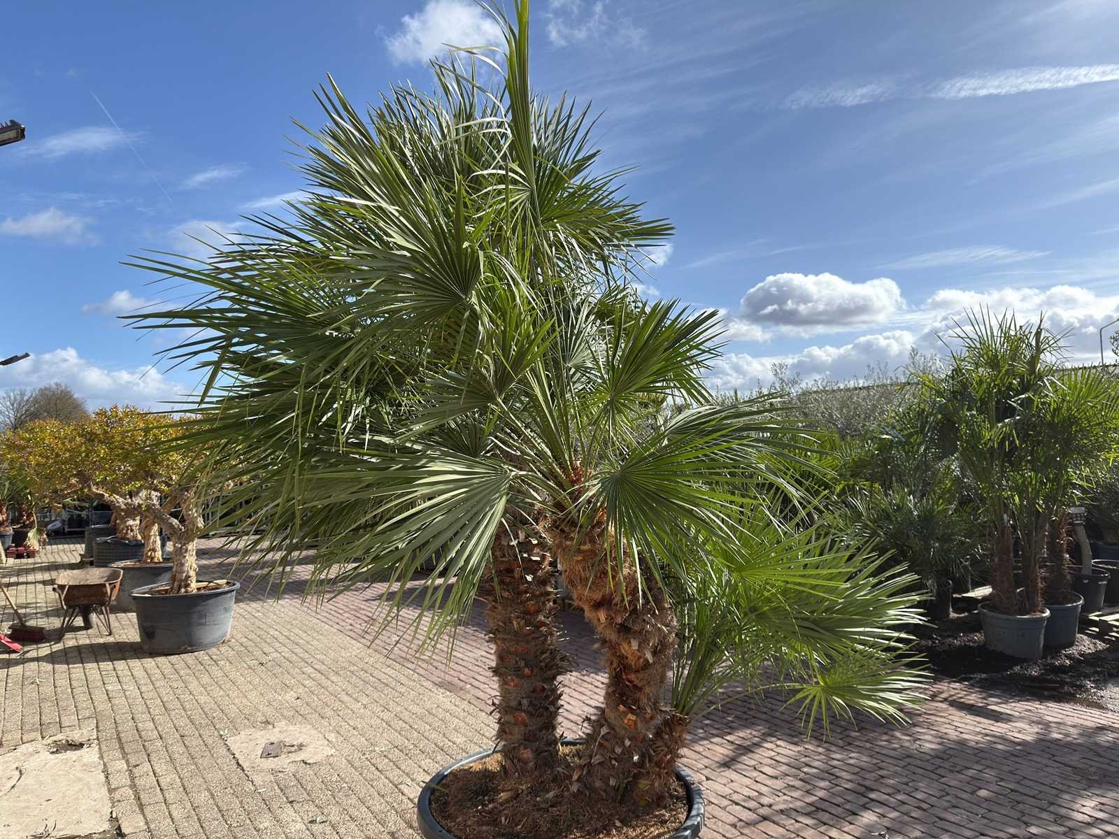 Type: Meerstammig Latijnse benaming: Chamaerops Humilis Hoogte ca.: 290cm In pot: true Stamdikte: 25cm