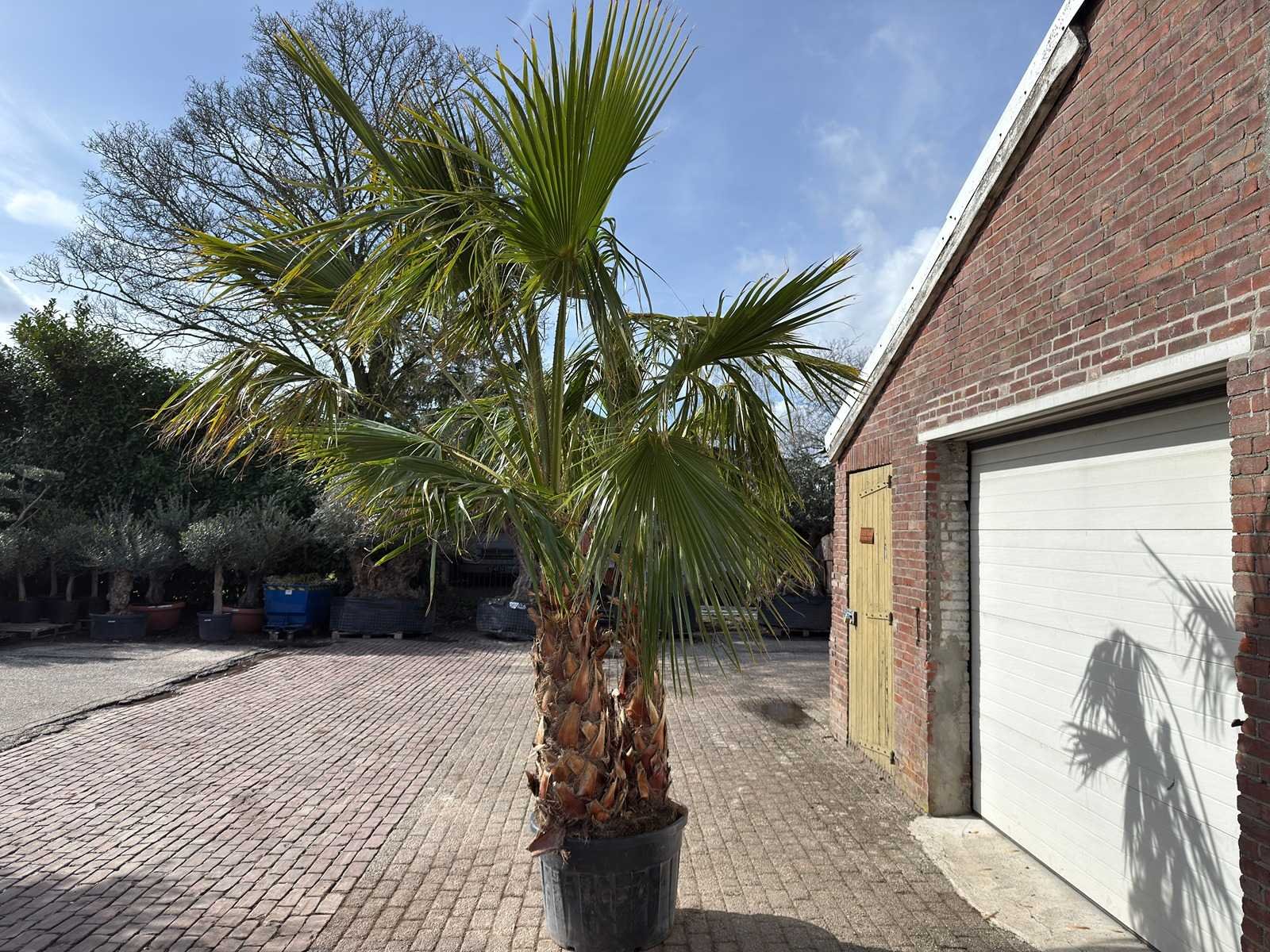 Type: Meerstammig Latijnse benaming: Washingtonia Robusta Hoogte ca.: 290cm In pot: true Stamdikte: 100cm